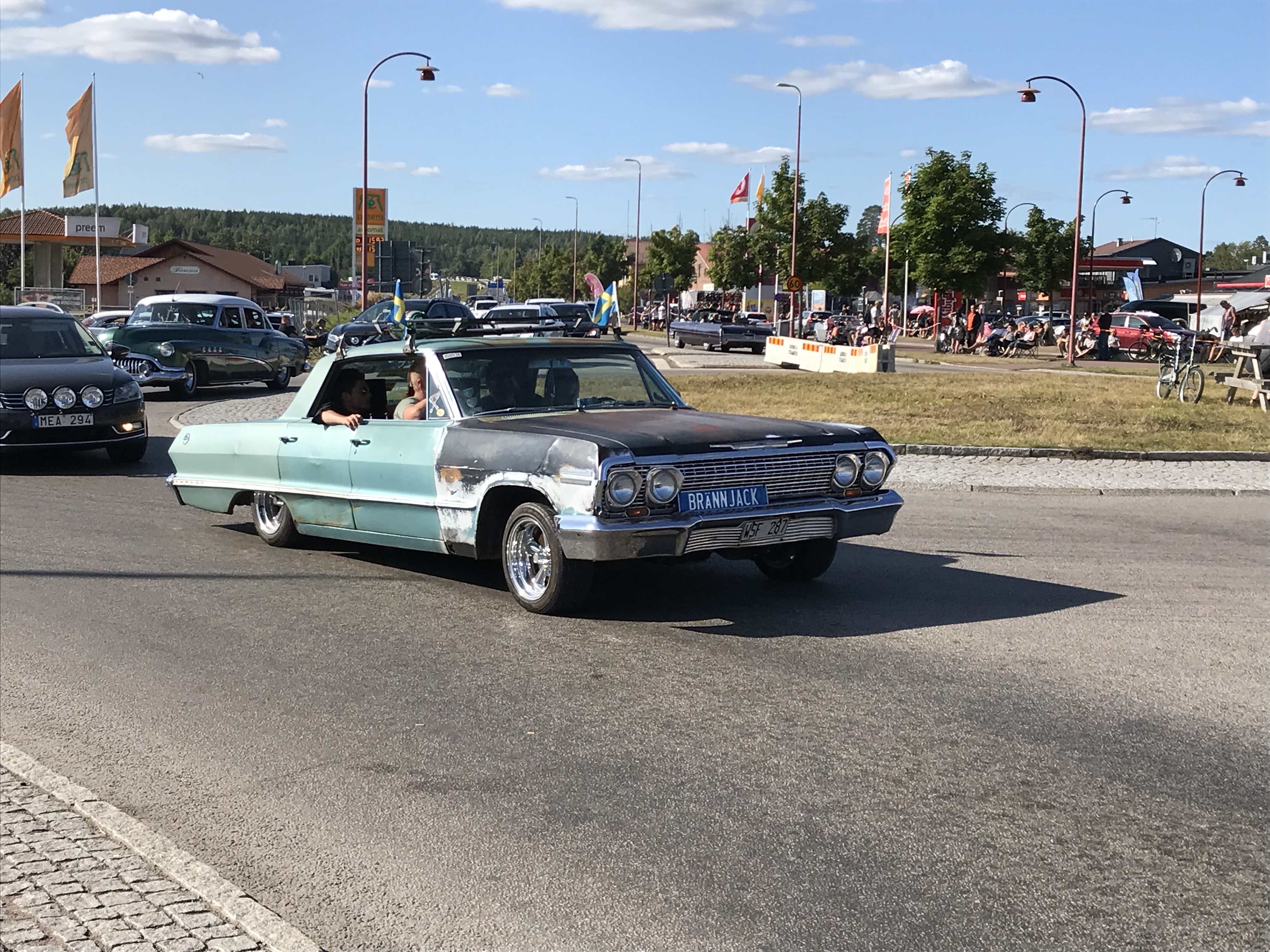 Hier , nous sommes restés à Rattvik pendant plusieurs heures sur le bord de la route et c’est un défilé incessant de voitures rutilantes , musique à fond qui paradent dans les rues de la ville