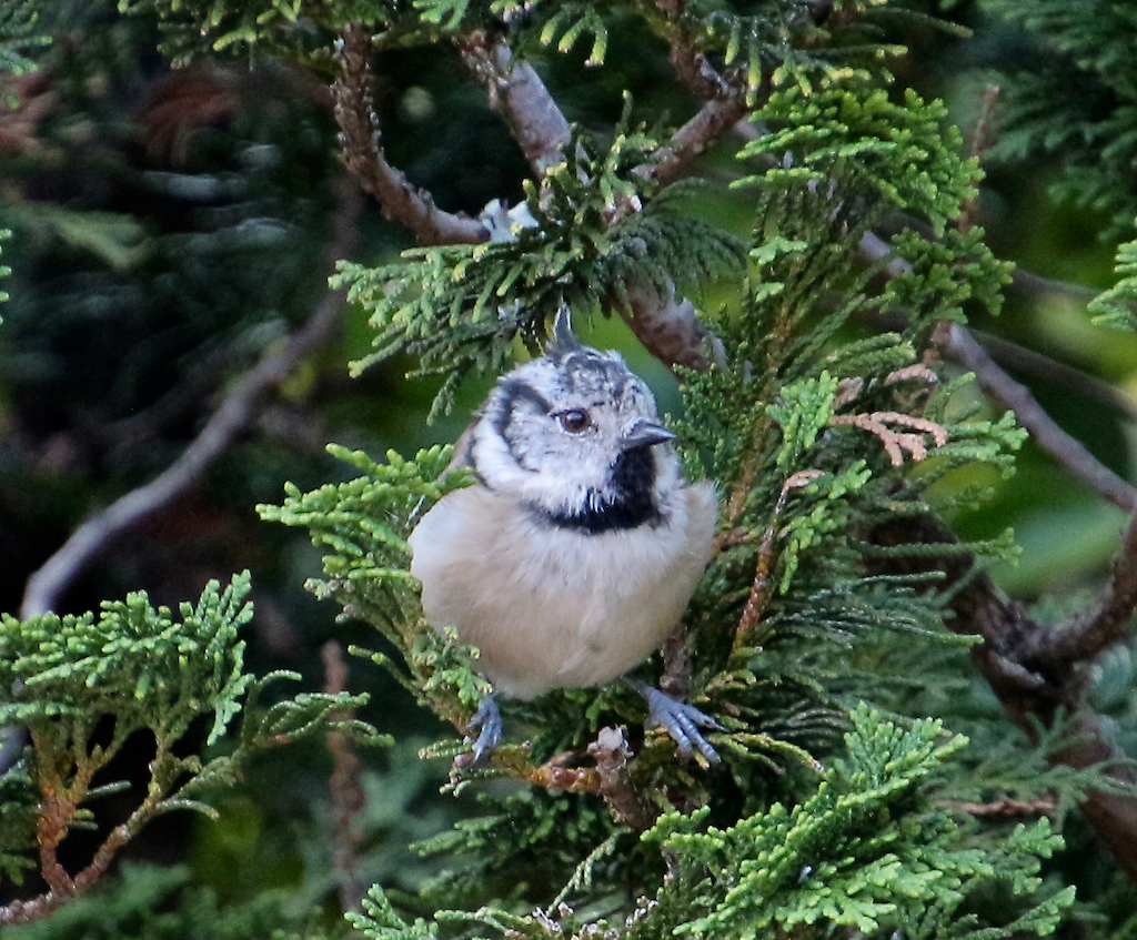 Photo insolite .... il veille sur sa maitresse. Pour ma part je prends soin de moi avec cette déchirure à l'épaule, le 600 mm à bout de bras ne m'a pas fait du bien, je vois bien quelques oiseaux dans le jardin mais j'en fais très très peu, je me contente de les regarder, je souffre déjà assez - en ce moment pas beaucoup d'oiseaux autour de chez moi, des mésanges huppées, bleues, charbonnières, et depuis hier moineaux et rouge-gorges qui viennent picorer devant ma porte de cuisine - je vous mets quand même une photo de la mésange huppée qui vient presque tous les jours, je l'ai prise en photo il y a quelques semaines.