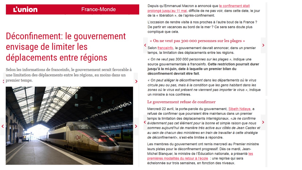 Voici la proposition de déconfinement datée du 21/04 de la FNHPA vers les autorités sanitaires françaises.