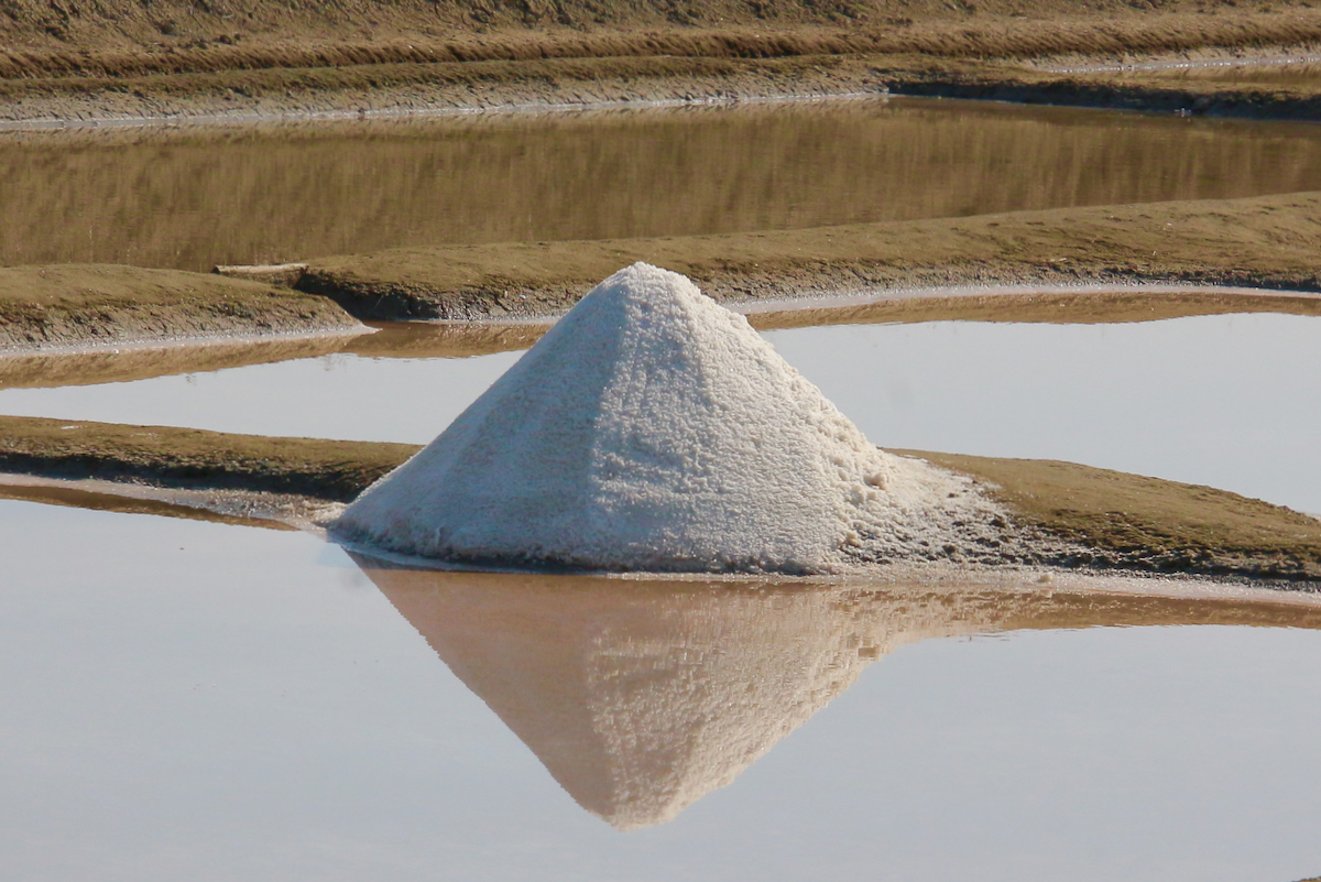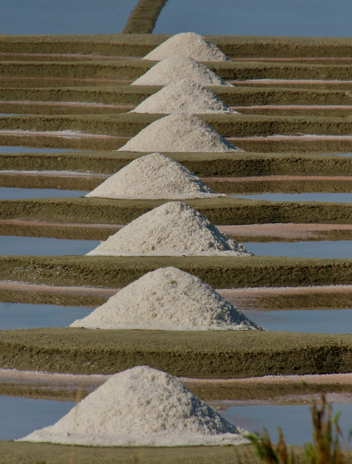 encore les monticules de sel dans les marais, bien alignés, et un cheval seul et tranquille au bord de la route, on aurait dit une statue !