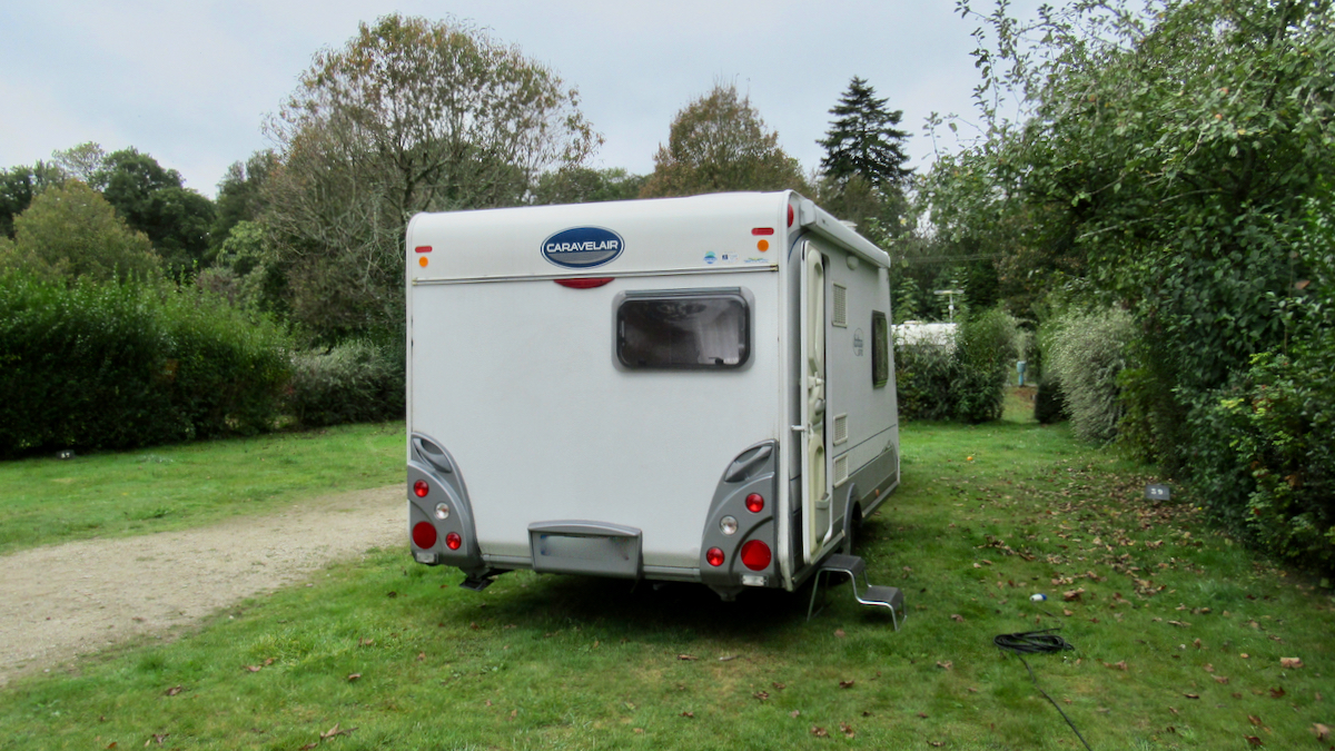 Sur la 1ère photo, notre caravane sur l'emplacement, ils sont grands et bien délimités. Là on était en train de s'installer.