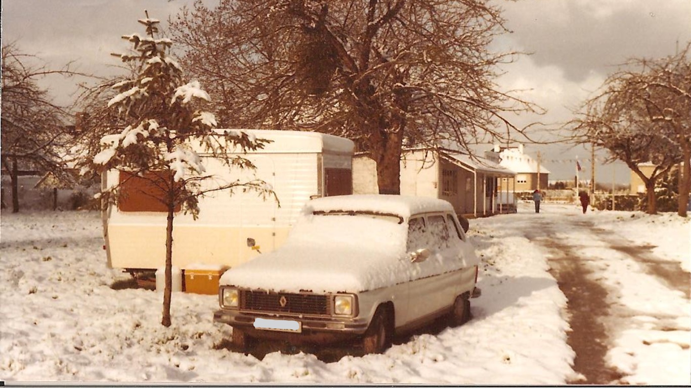 Caravaneige " Les Pommiers " Beauvoir ( 50) 10 Avril 1978 .......Neige de Pâques
