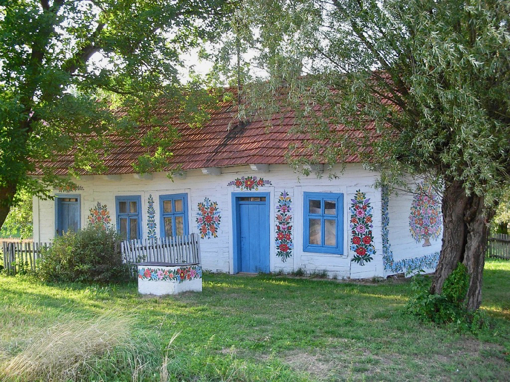 PEINTURE ACRYLIQUE sur bois - J'ai eu idée de décorer mes fenêtres de chambres qui donnent sur le jardin avec une fresque polonaise, cette idée me vient du joli village polonais qui s'appelle ZALIPIE, les habitants ont peint les façades de leur maison avec toutes sortes de motifs.