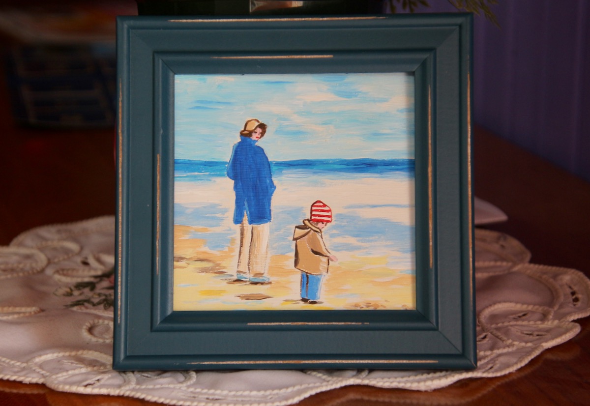 Pour Noël j'essaie toujours de faire une peinture pour mes amies, avant bien sûr je me renseigne discrètement sur leurs goûts, pour ne pas imposer .... là c'est pour une amie d'Avignon, je lui ai peint sur un même bois deux tableaux recto verso, quand elle sera lassée d'un elle tournera le bois, elle aura le verso, j'ai trouvé en ligne un petit cadre en bois pas mal ! J'espère que ça lui plaira, je lui enverrai par la poste avant Noël !