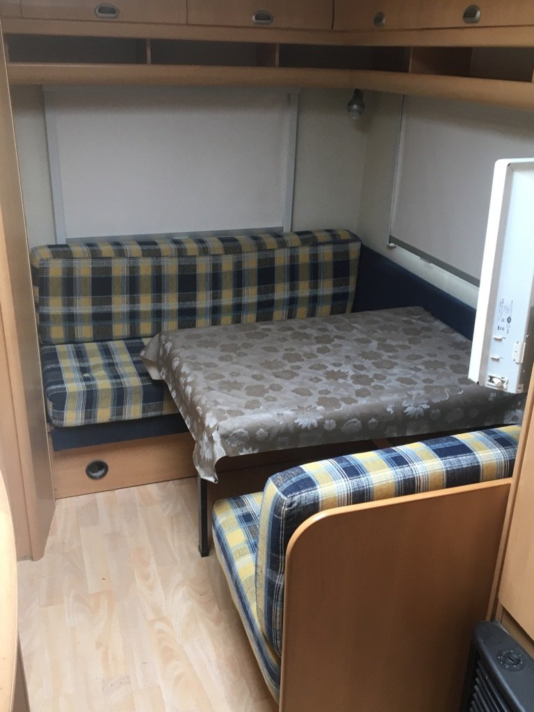 -Grande dinette se transformant en lit ( mon mari prefere un lit fixe et manger dans le auvent mais moi je pense au jour de pluie , vent , froid , moustiques )