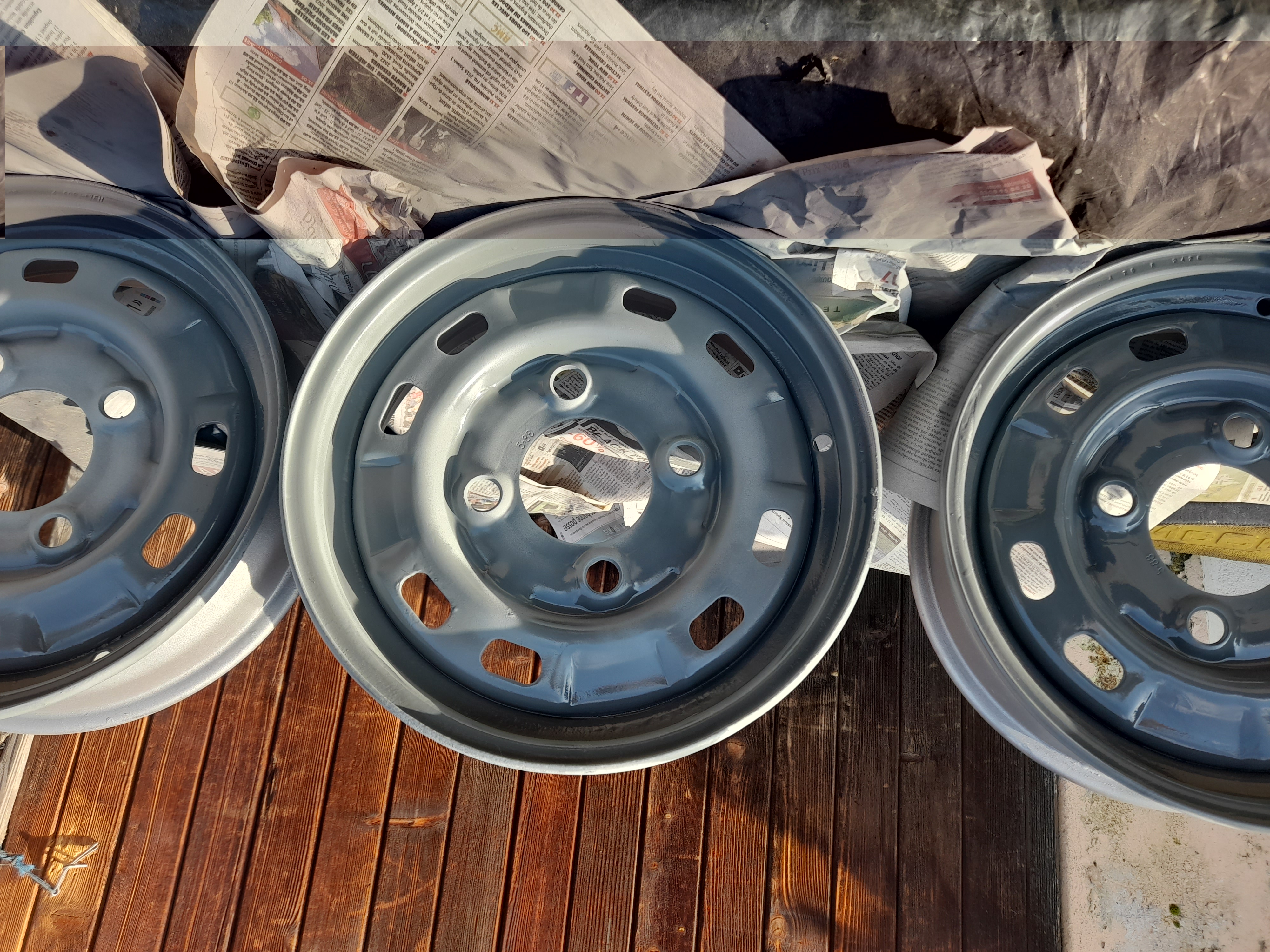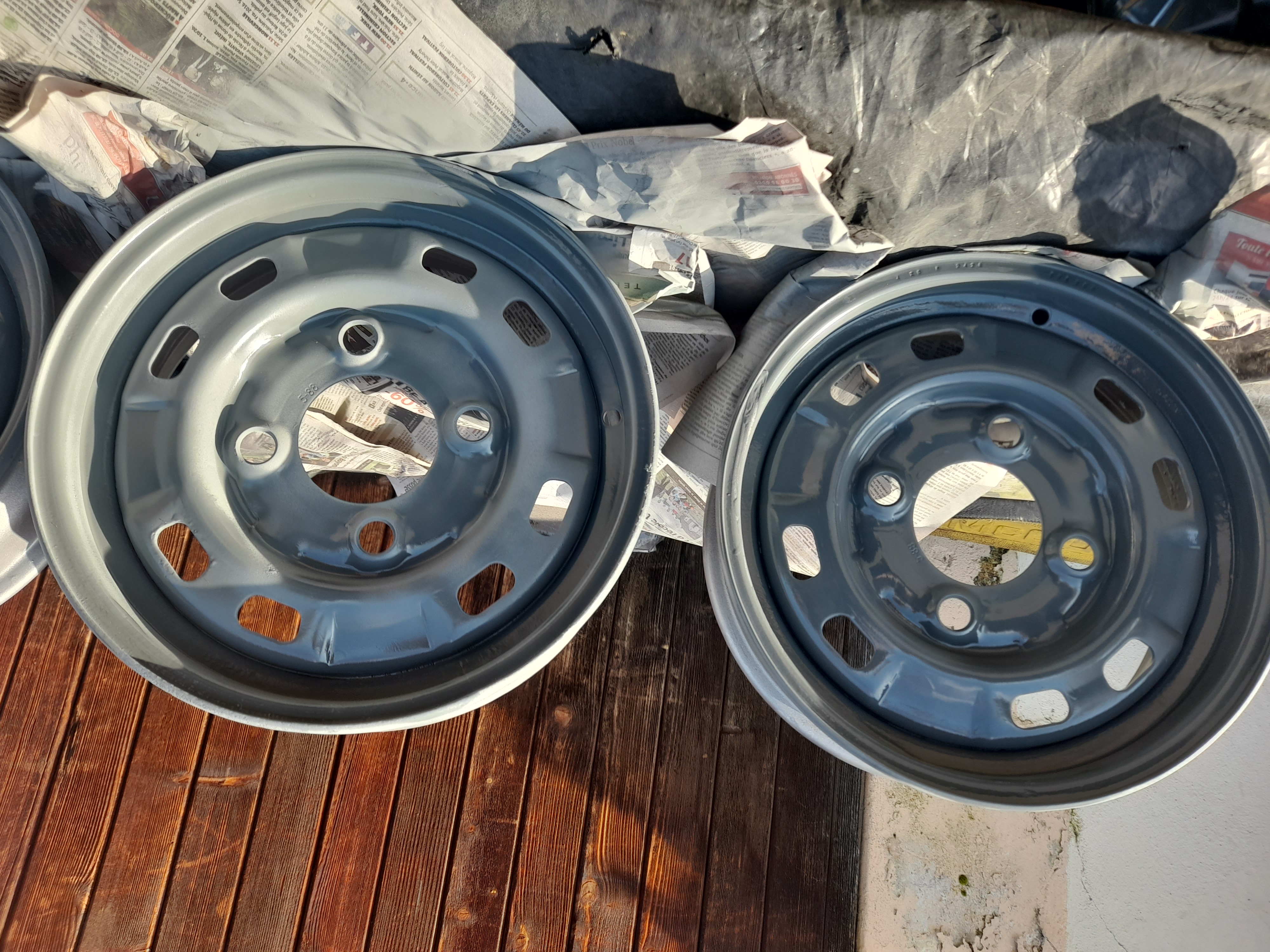 cette semaine les jantes decapage ,poncage , apres anti rouille ,et peinture galvanisée ,prete a monter les pneus ,