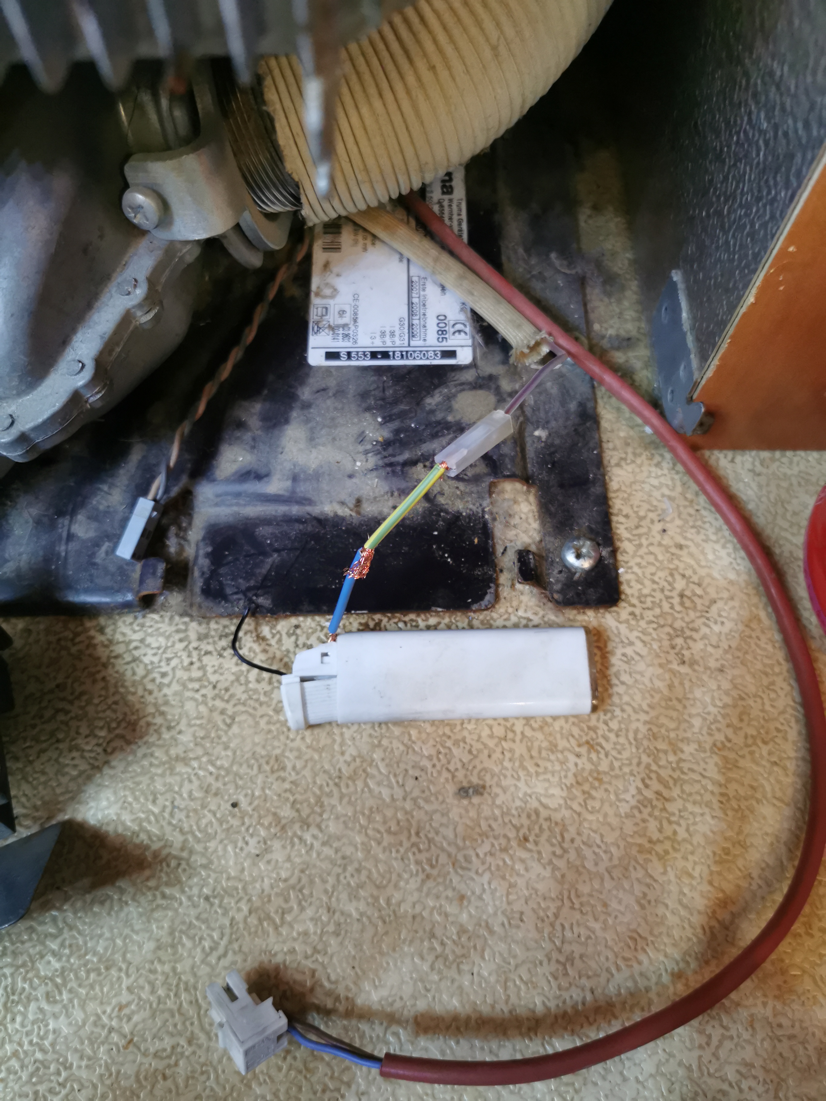 Sur la 1ère des 2 photos : est-ce un effet d'optique ? On a l'impression que les fils électriques noirs et bleus sont raccordés au briquet !