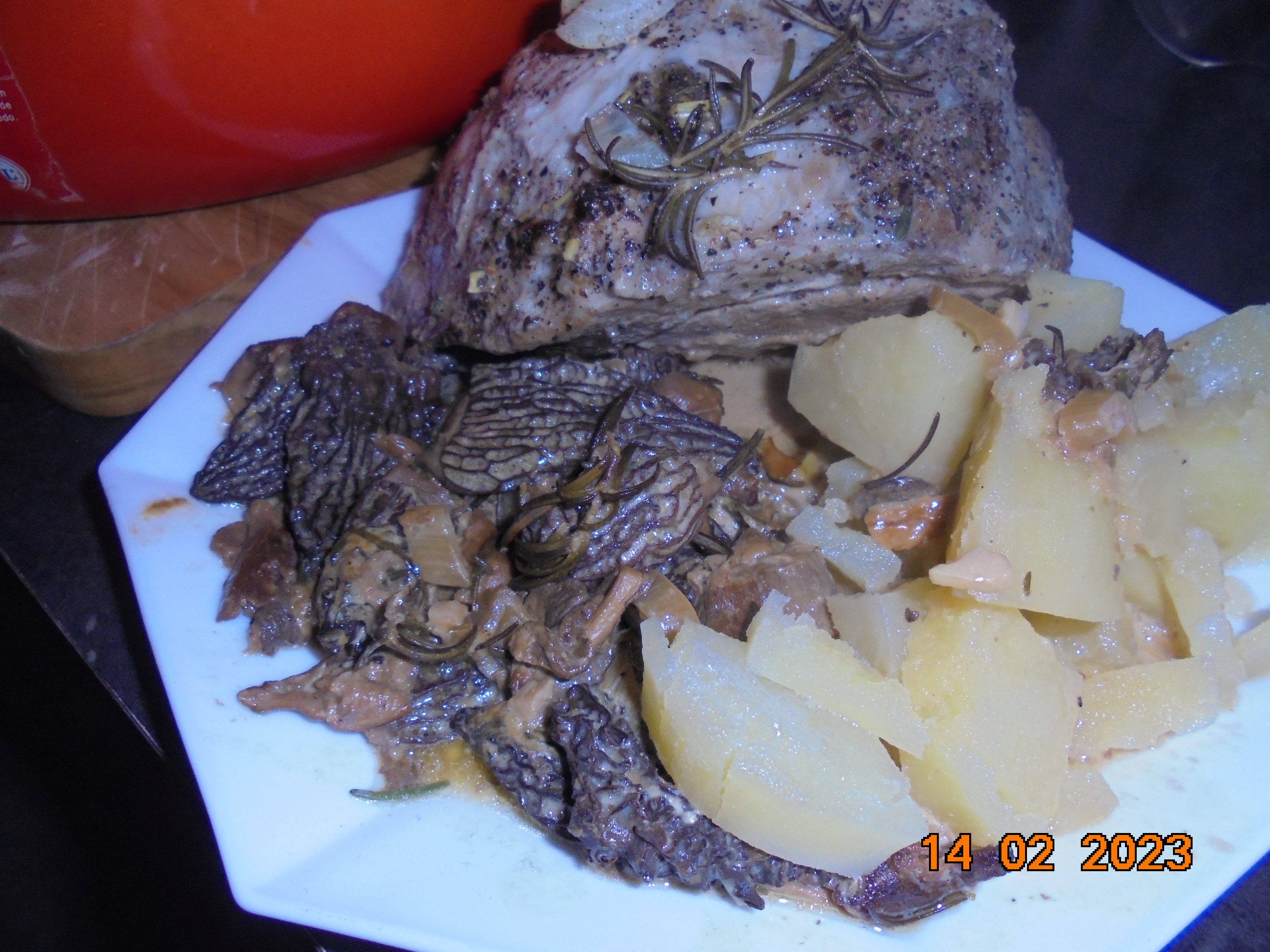 Après avoir mijoté doucement et à mi-cuisson, j’y ai ajouté un bocal de cèpes et de morilles déshydraté que j’avais mis à tremper avant.