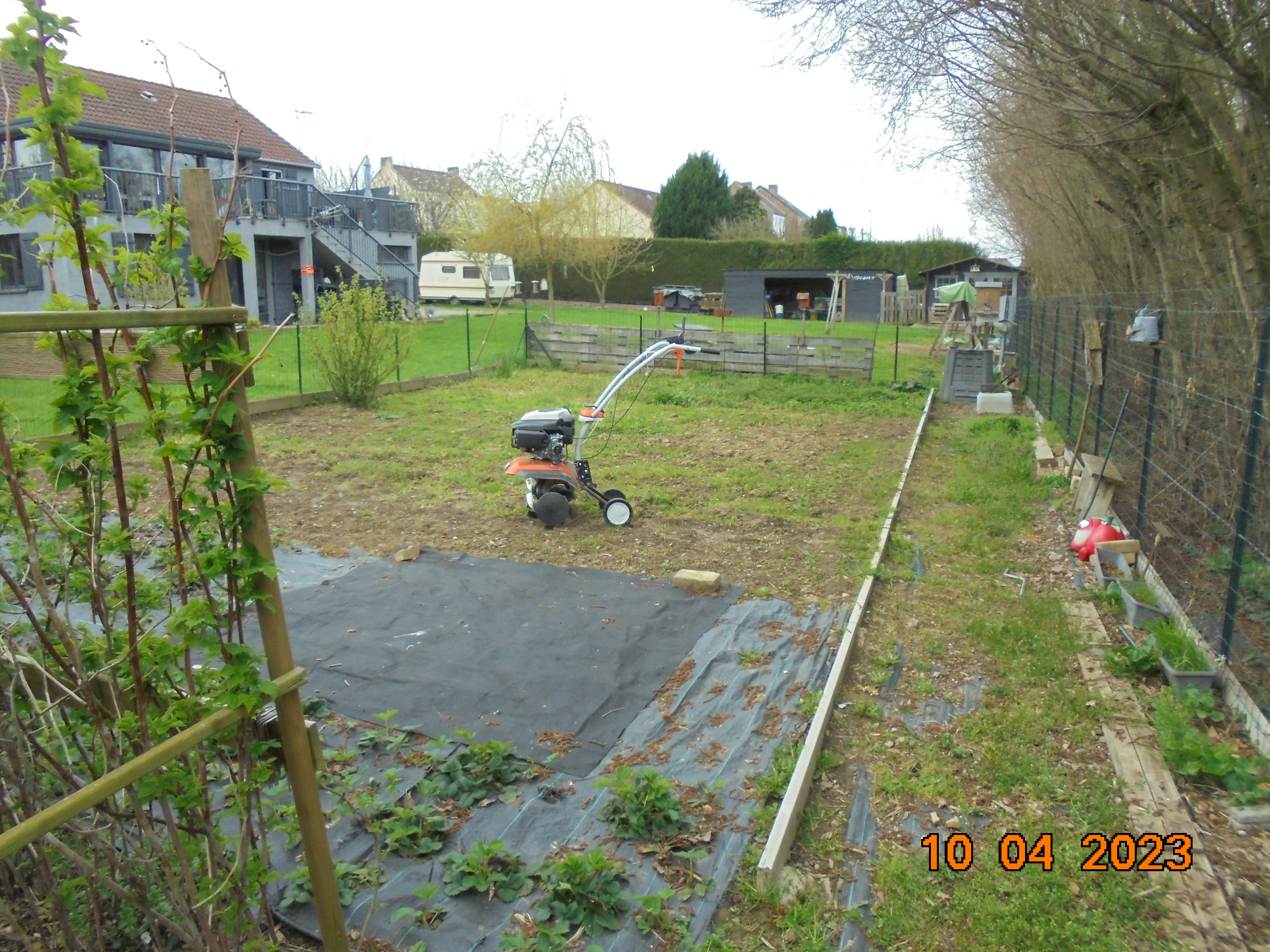 Et bien... je crois que je vais m'acheter un motoculteur ! je pense qu'il me faudra une tondeuse aussi... hier j'ai voulu tondre quelques lignes mais l'herbe était encore trop humide en-dessous. J'ai vidé le panier et le bourrage et la tondeuse n'a pas redémarré ! je dois réessayer et si jamais elle ne veut plus... elle fera le bonheur d'un ferrailleur !