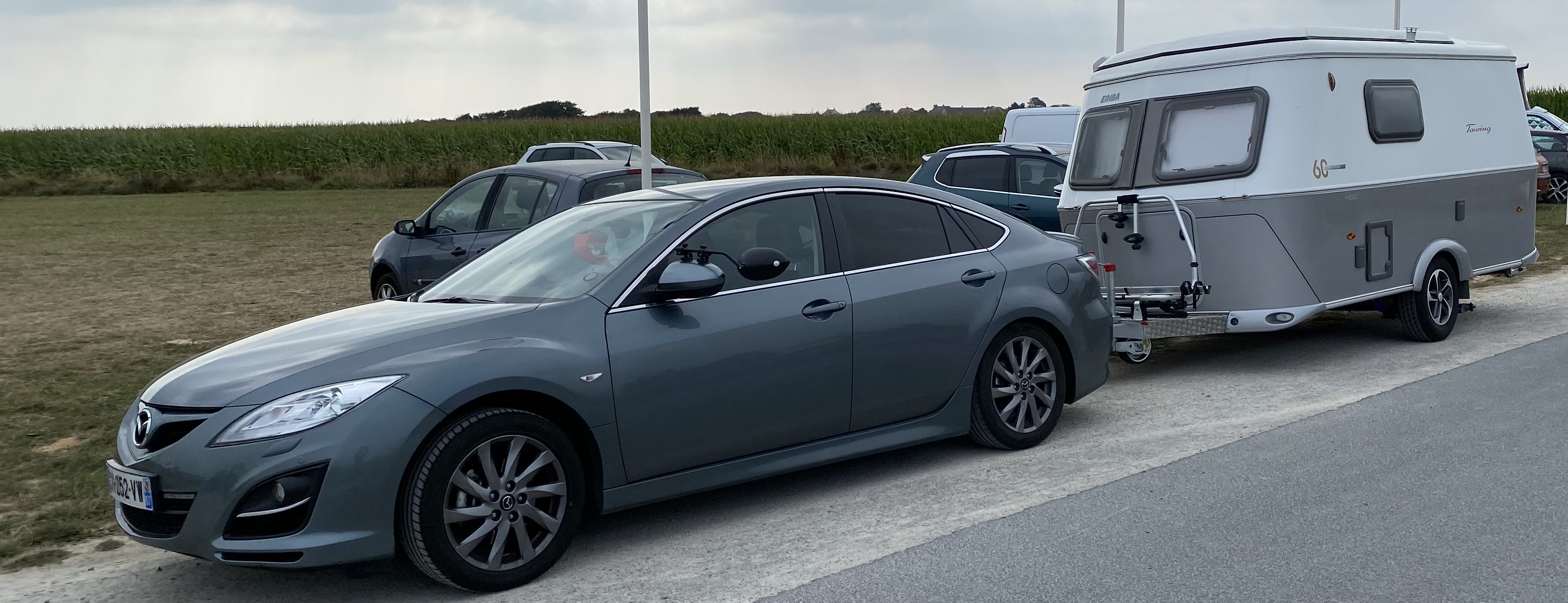 Mazda 6 Shizuka MZRCD 2.2l 129 ch 340Nm 1800tr/mn Eriba Touring 430 60 ème Édition de 2019 Anti-lacets AlkoMover Reich,Auvent Isabella, Store Thule 6200,Rain blocker G2 side et Front