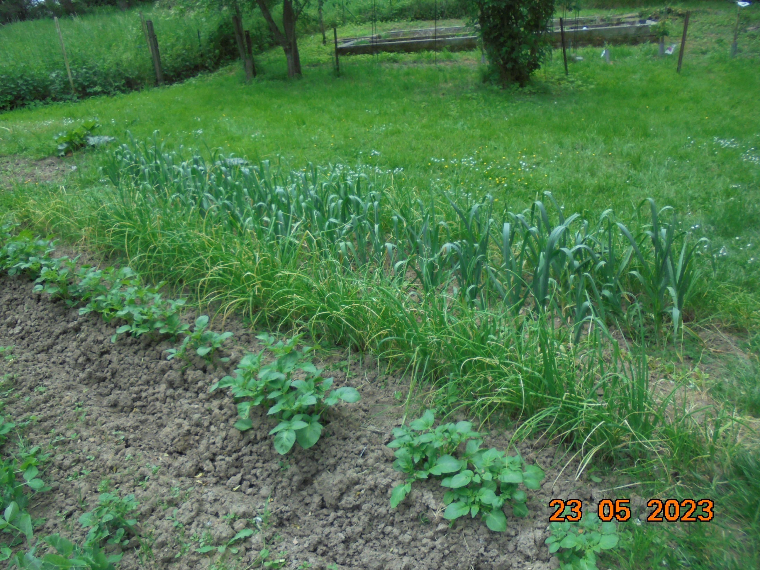 Les deux premières photos, c'est comme j'ai eu une partie du jardin et notamment, à l'emplacement de l'ancienne serre et des couches complètement recouvertes de ronces. Ce n'était que des ronces sur au moins deux mètres. Mais une bonne partie du potager a été faite sur une pelouse, pas facile au début non plus, mais la terre devient plus facile à travailler.