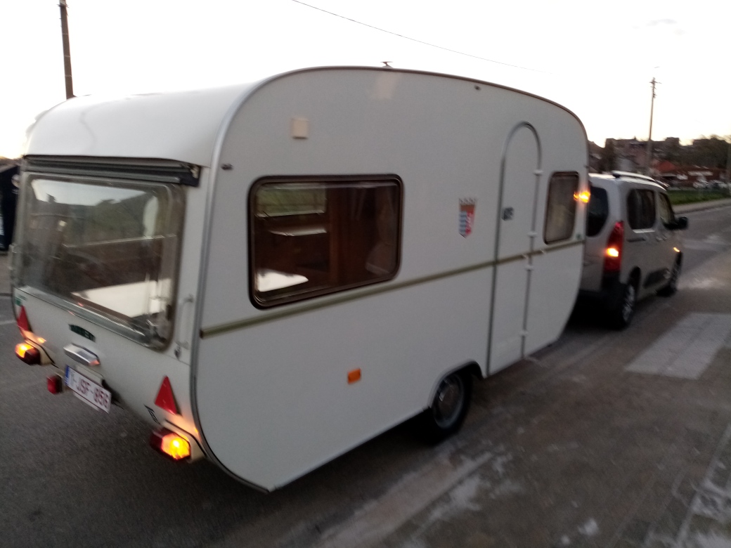 Tabbert Comtesse 395A de 1974 tractée par un Citroën Berlingo 2020