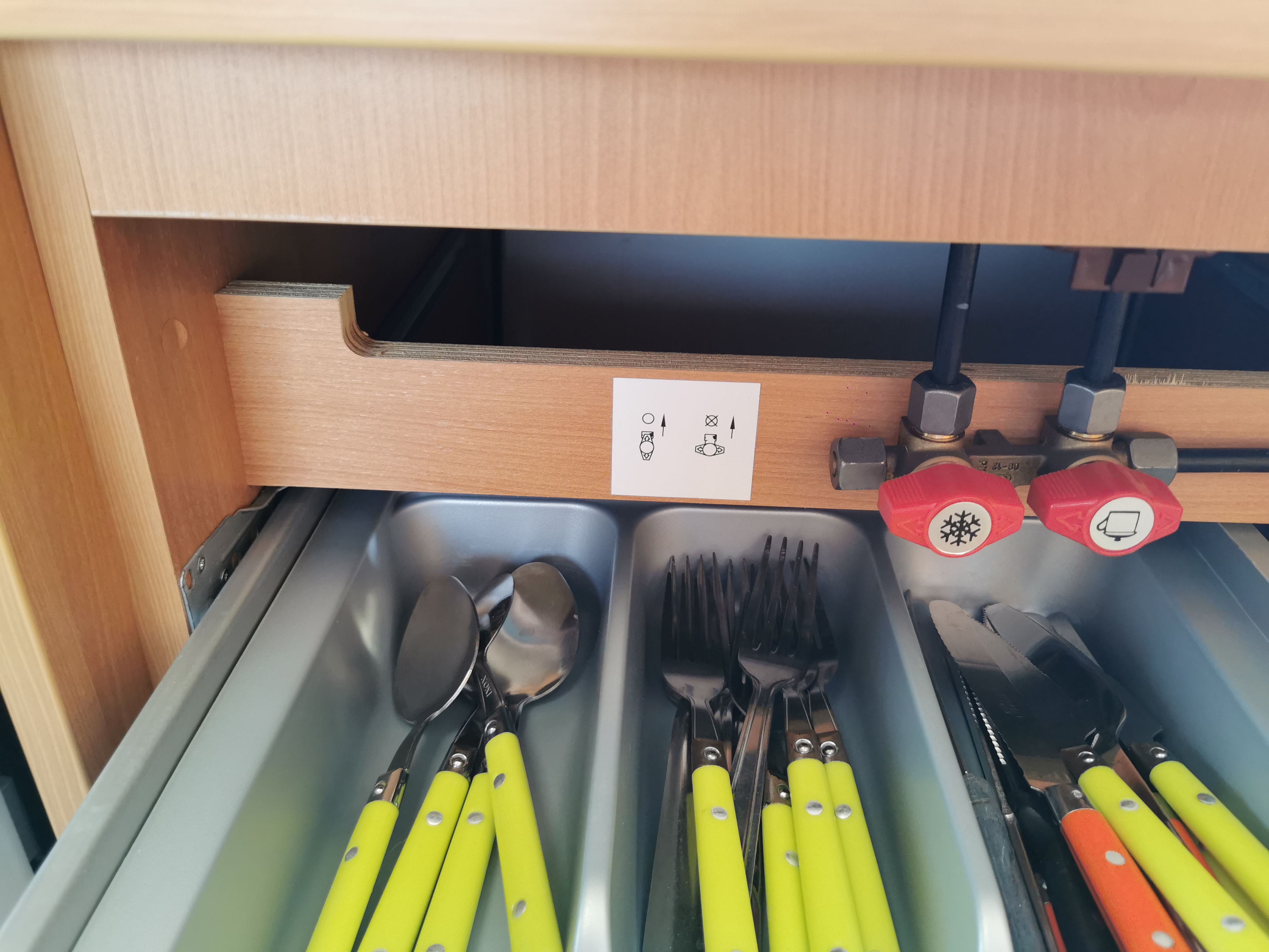 Autre astuce: dans mon tiroir à couverts il y avait une petite place perdue devant les robinets de gaz, j'ai cherché ce que je pouvais y mettre. Et voilà mon idée