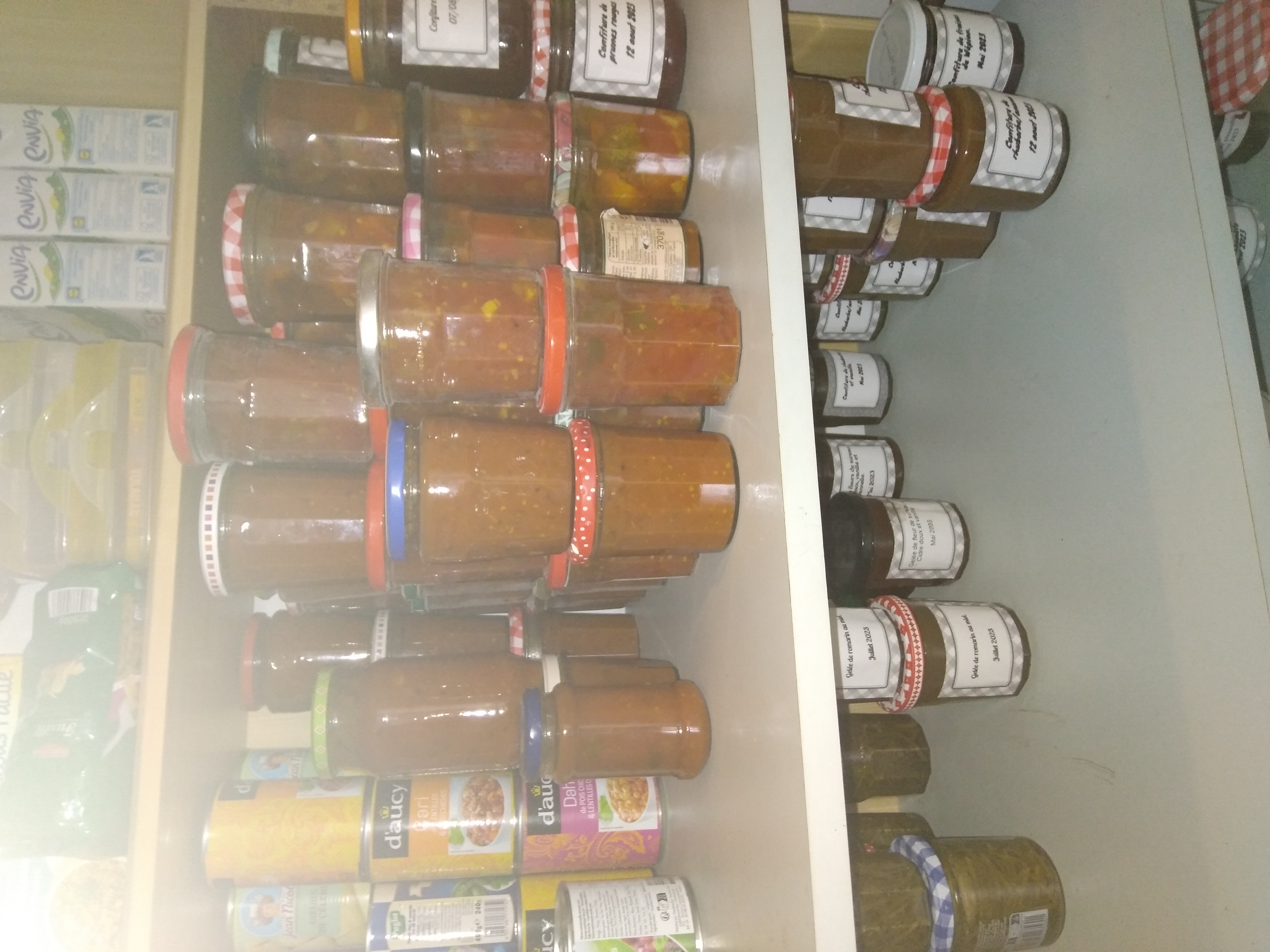 Voici mes conserves de légumes stérilisés et les pots de confitures. J'ai dans mon cellier, 243 pots et j'en ai certainement déjà donné au moins 40.