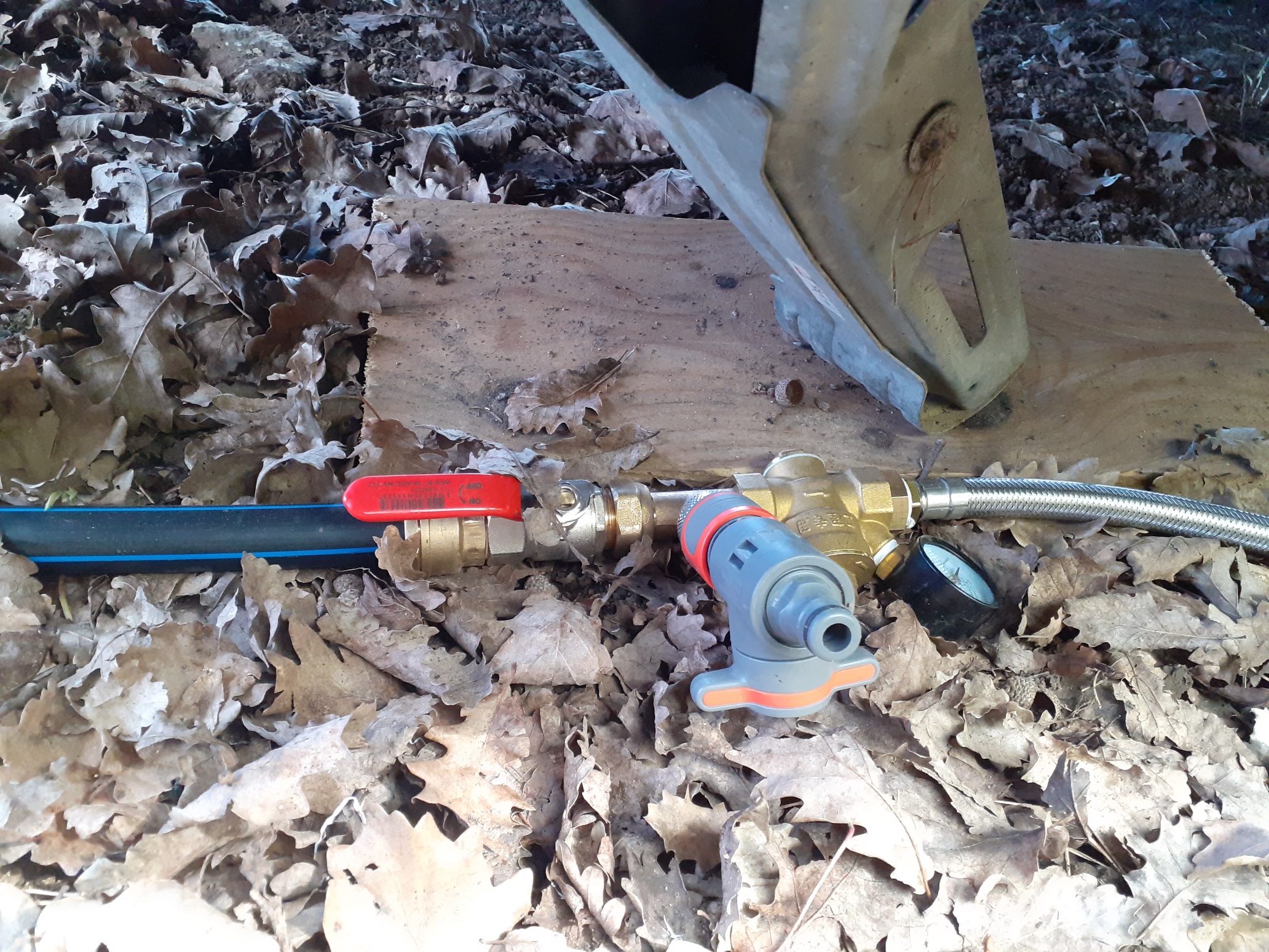 Je me suis dit c'est pas possible, et j'ai branché un pistolet d'arrosage sur le tuyau de 25mm. Et là une pression phénoménale !!