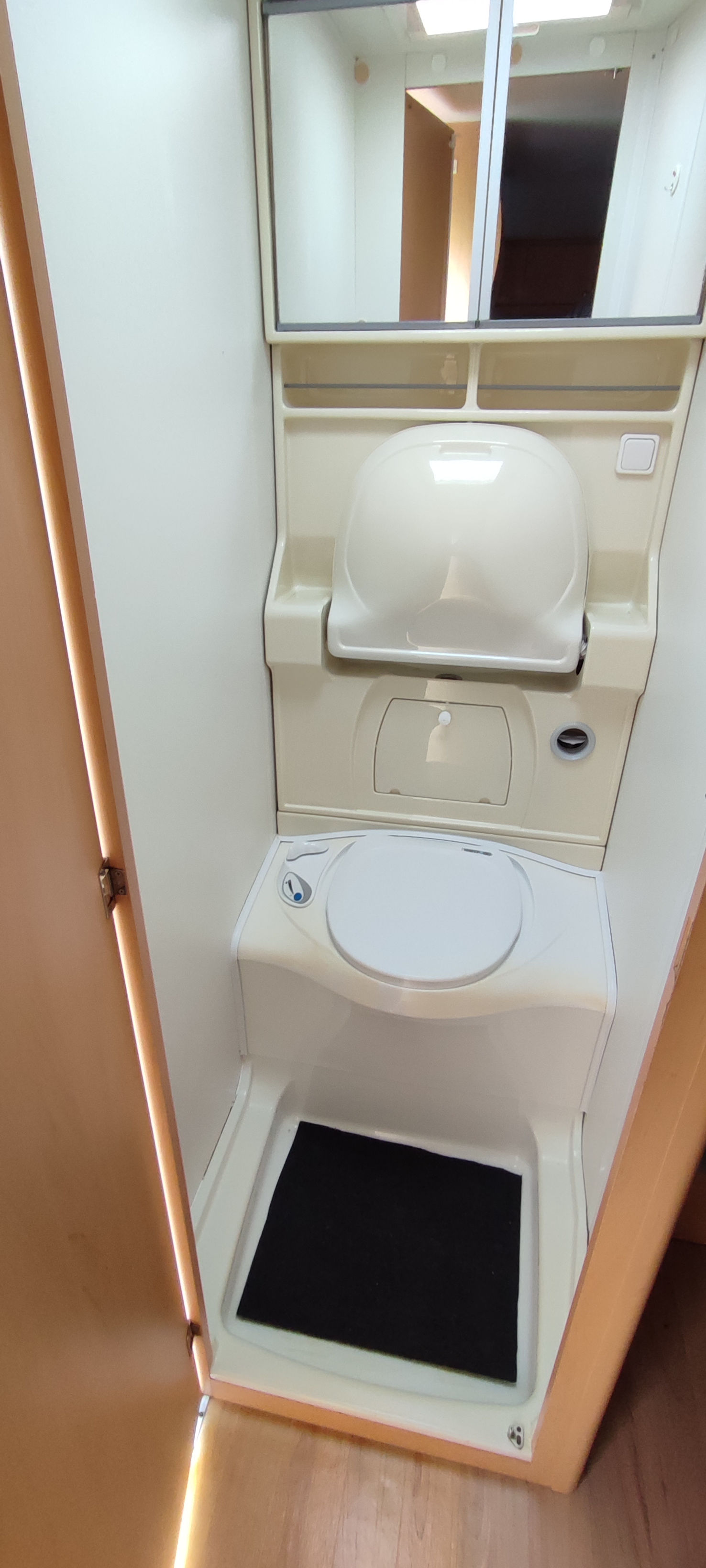 Voici des photos du cabinet de toilette. Petit mais fonctionnel. Pour dépanner ça va très bien :wink: