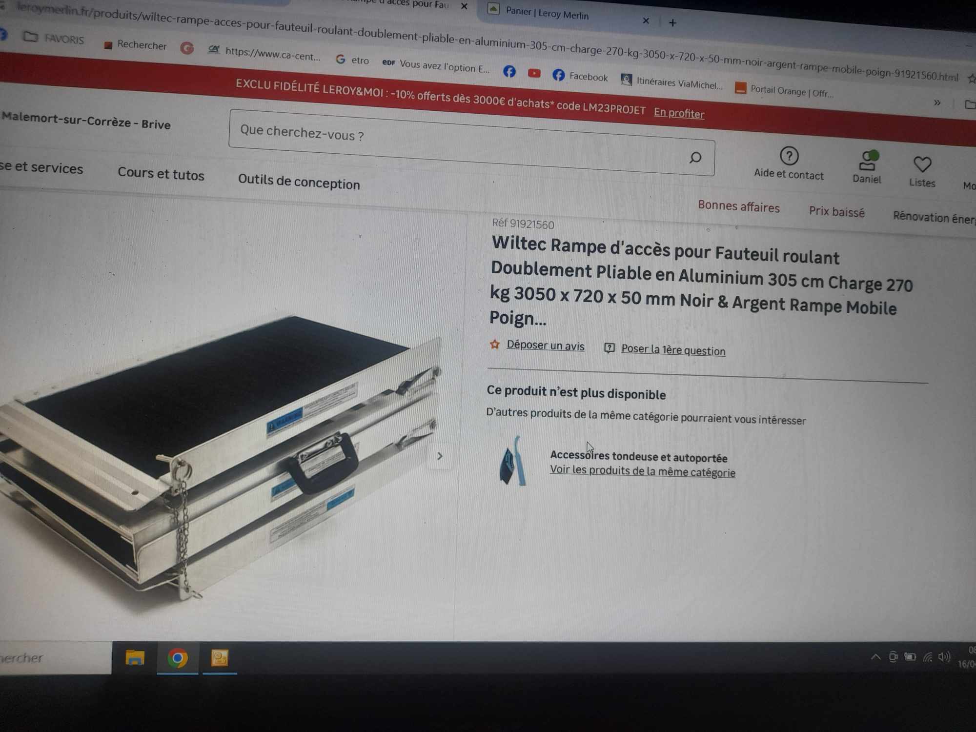 est devant la porte nous avons opter pour une rampe avec un anti dérapant ,de 3 mètre de long , pliable , en 2 , comme une valise