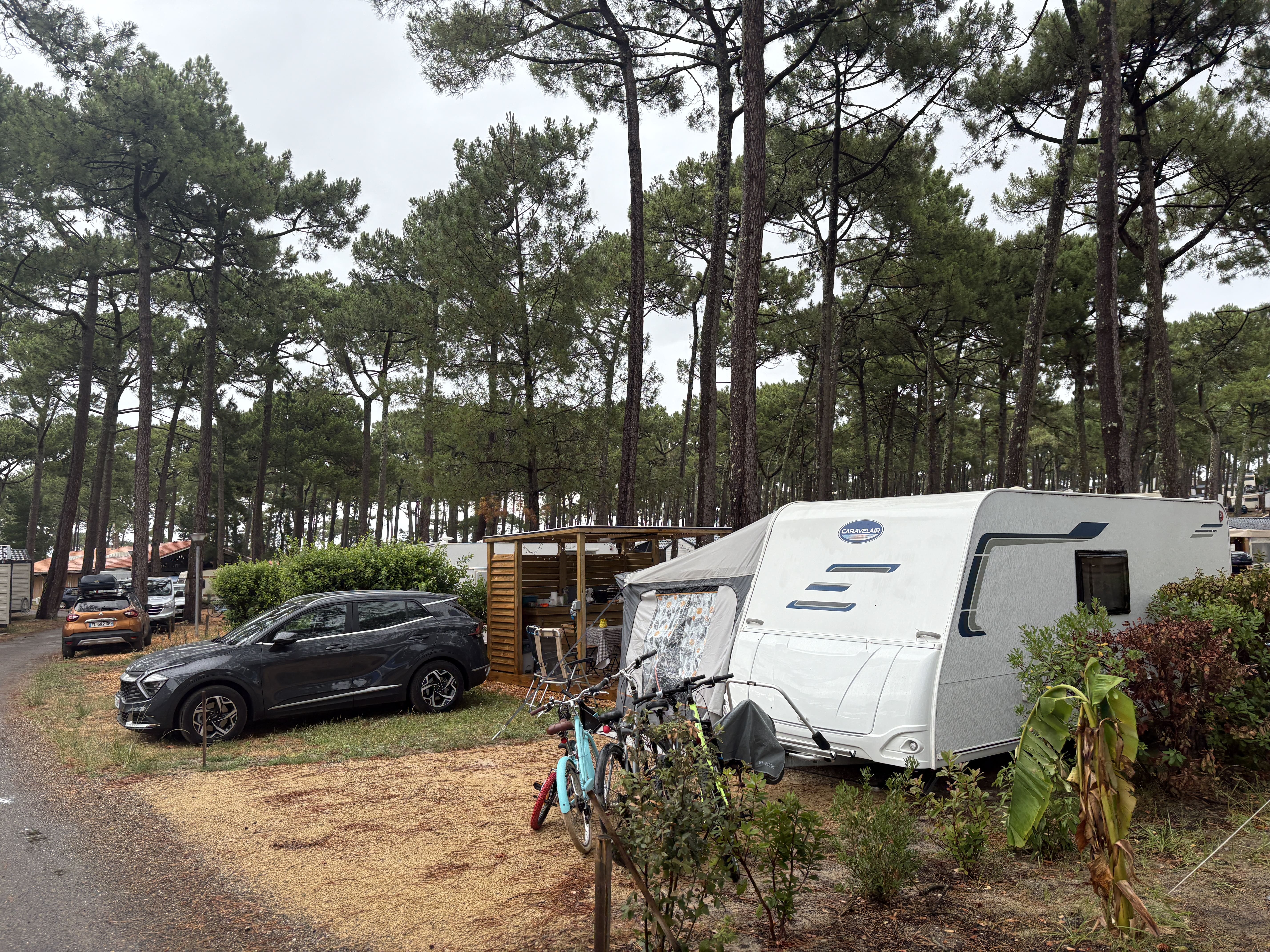 On a pris un emplacement de 120m2 min avec terrasse en dur avec frigo et plancha, lumière, eau. Pas eu besoin de sortir la tonnelle cette année.