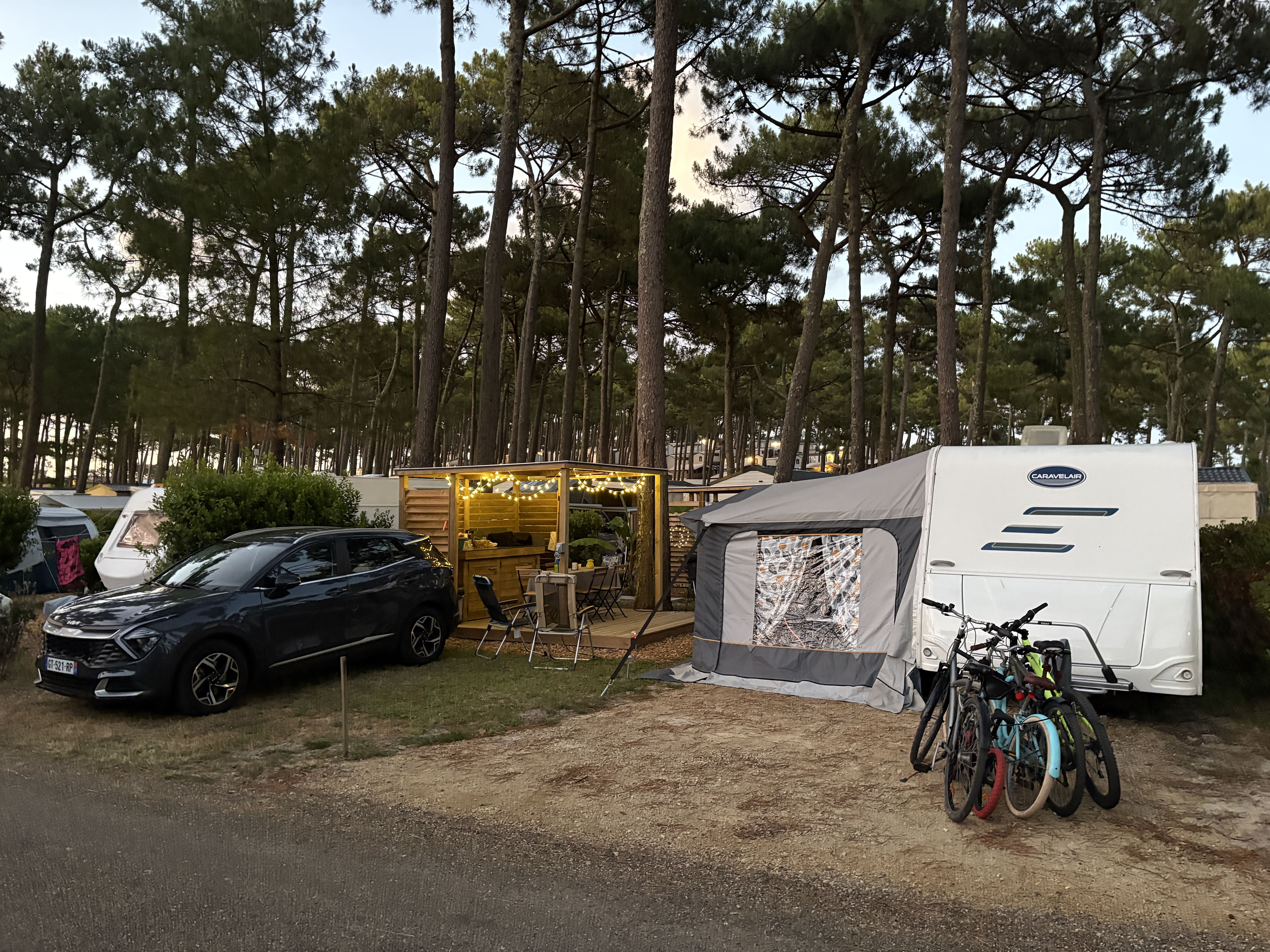 On a pris un emplacement de 120m2 min avec terrasse en dur avec frigo et plancha, lumière, eau. Pas eu besoin de sortir la tonnelle cette année.