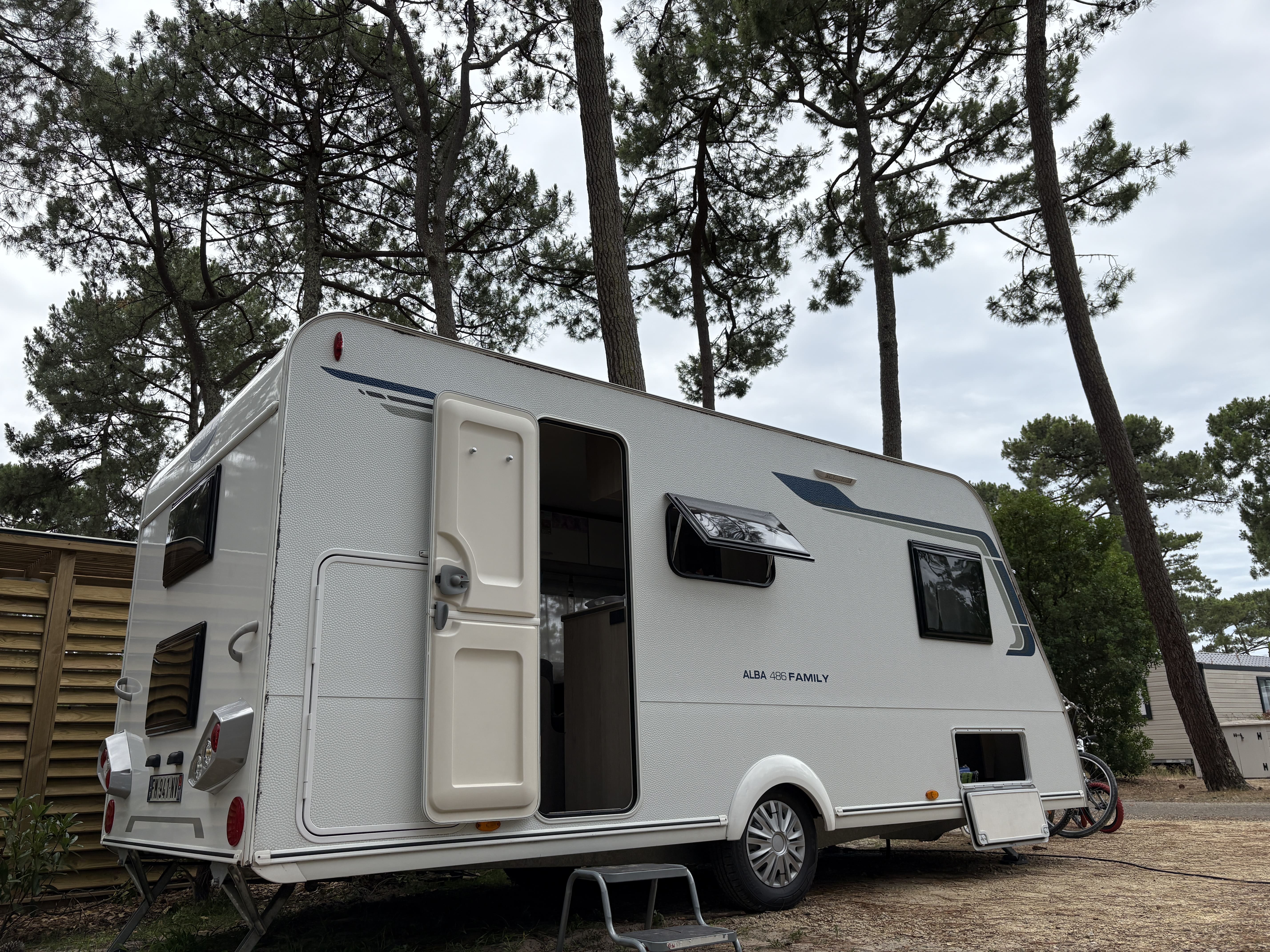 L’Alba change de destination cet été, la voilà posée sous les pins à Biscarrosse pour 4 semaines. Nous étions à Vieux Boucau les années précédentes mais on reste dans les landes