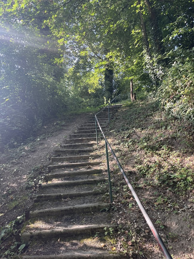 Attention les emplacements dans la zone "E" sont accessibles par une autre route. Il ne faut pas entrer dans le camping mais prendre à gauche pour monter le long des remparts.