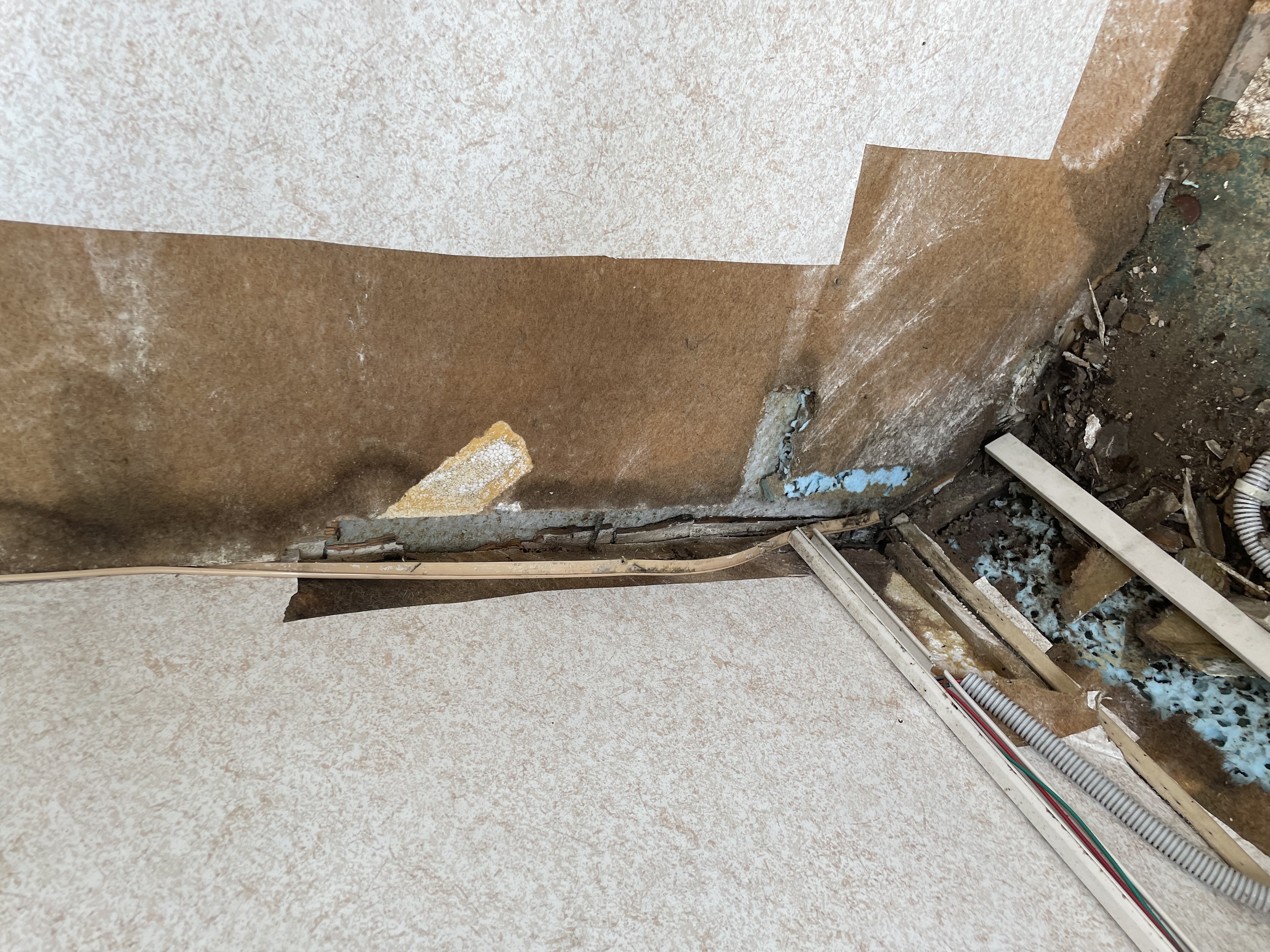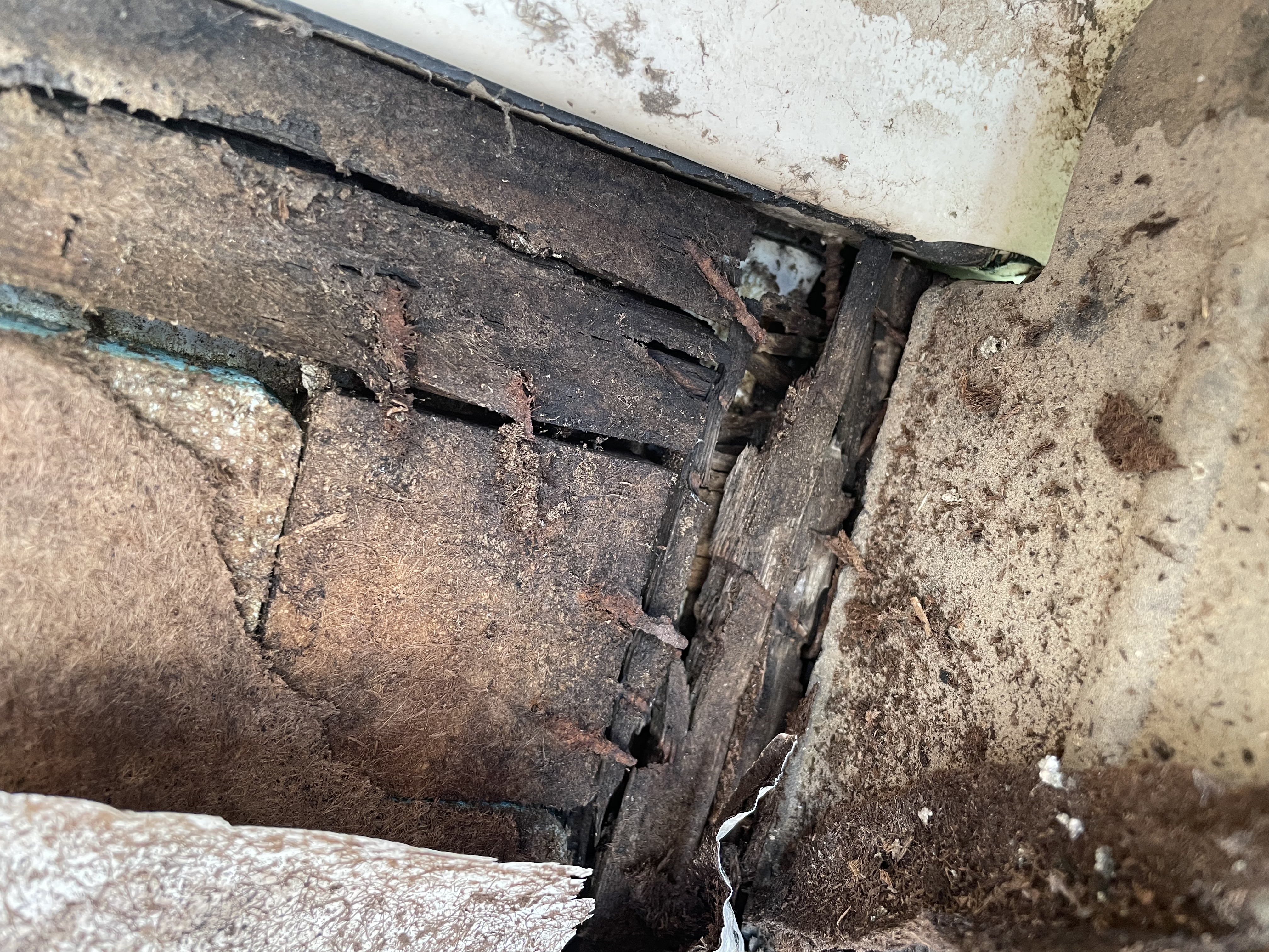 Entre temps j'ai trouvé une deuxième infiltration, cette fois-ci au niveau de la paroi latérale du coffre. Pour le coup c'est complètement pourri... Et sur le bord le tasseau a l'air courbe, je sais pas comment je vais pouvoir remplacer ça!! Je mettrai des photos demain...