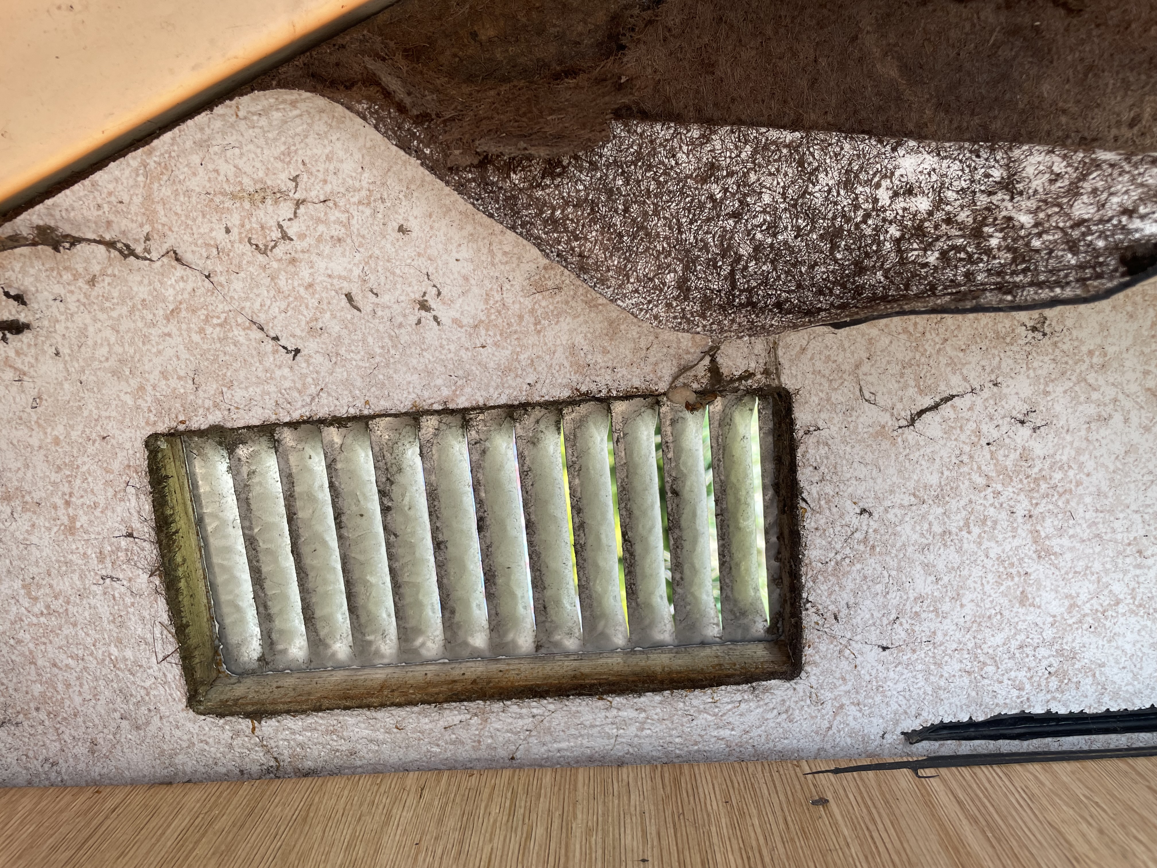 Voilà un peu l’étendu du problème…. Et le gros souci à l’avant, à cause je suppose du couvercle du coffre remplacé par une plaque de plexi!! Mais je me questionne aussi vis à vis de l’absence de protection derrière la grille d’aération.