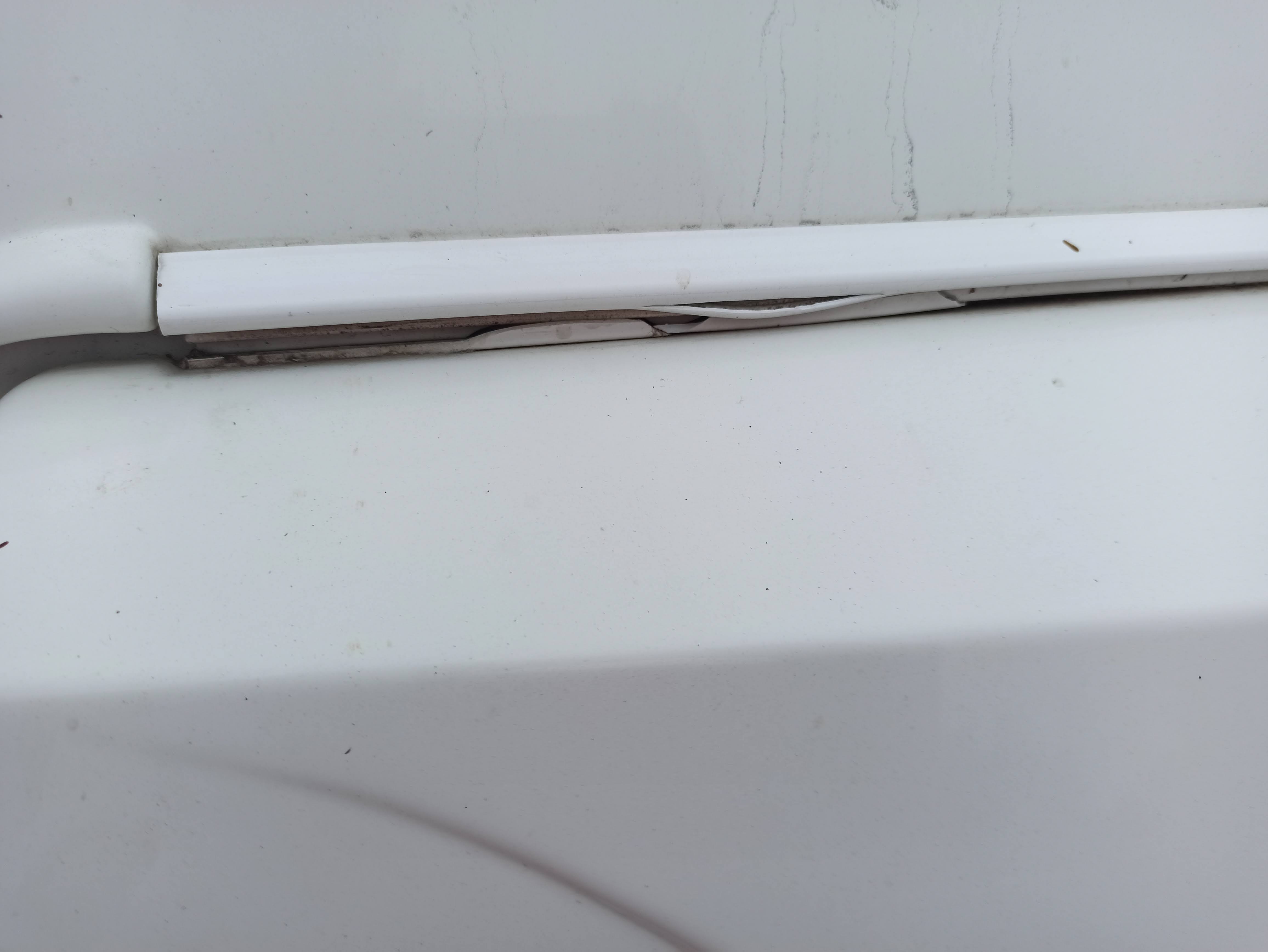 une fois cette charnière ( piano inox ) posée , il suffit de la recouvrir d'un petit profilé PVC du genre goutte d'eau