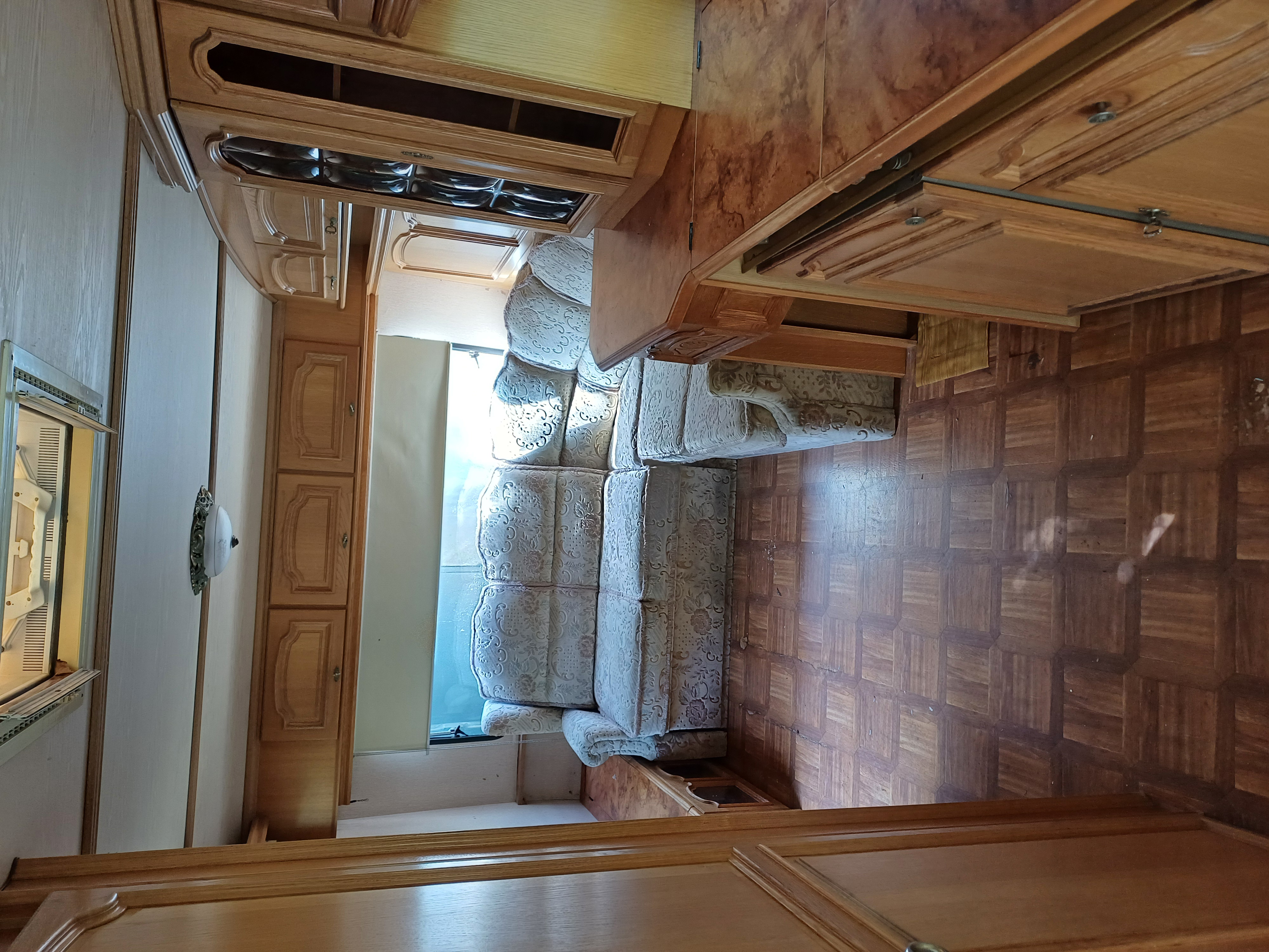 Remarque le sol me parait un peu souple par endroit, sa reste léger, je ne vais pas passer à travers mais je ne m'amuserais pas à sauter de tout mon poids ( 95kg). Typique des caravanes ou peut etre un petit point de faiblesse? Le sol j'ai l'impression que c'est de l'osb avec une "feuille" de déco plaqué contre.