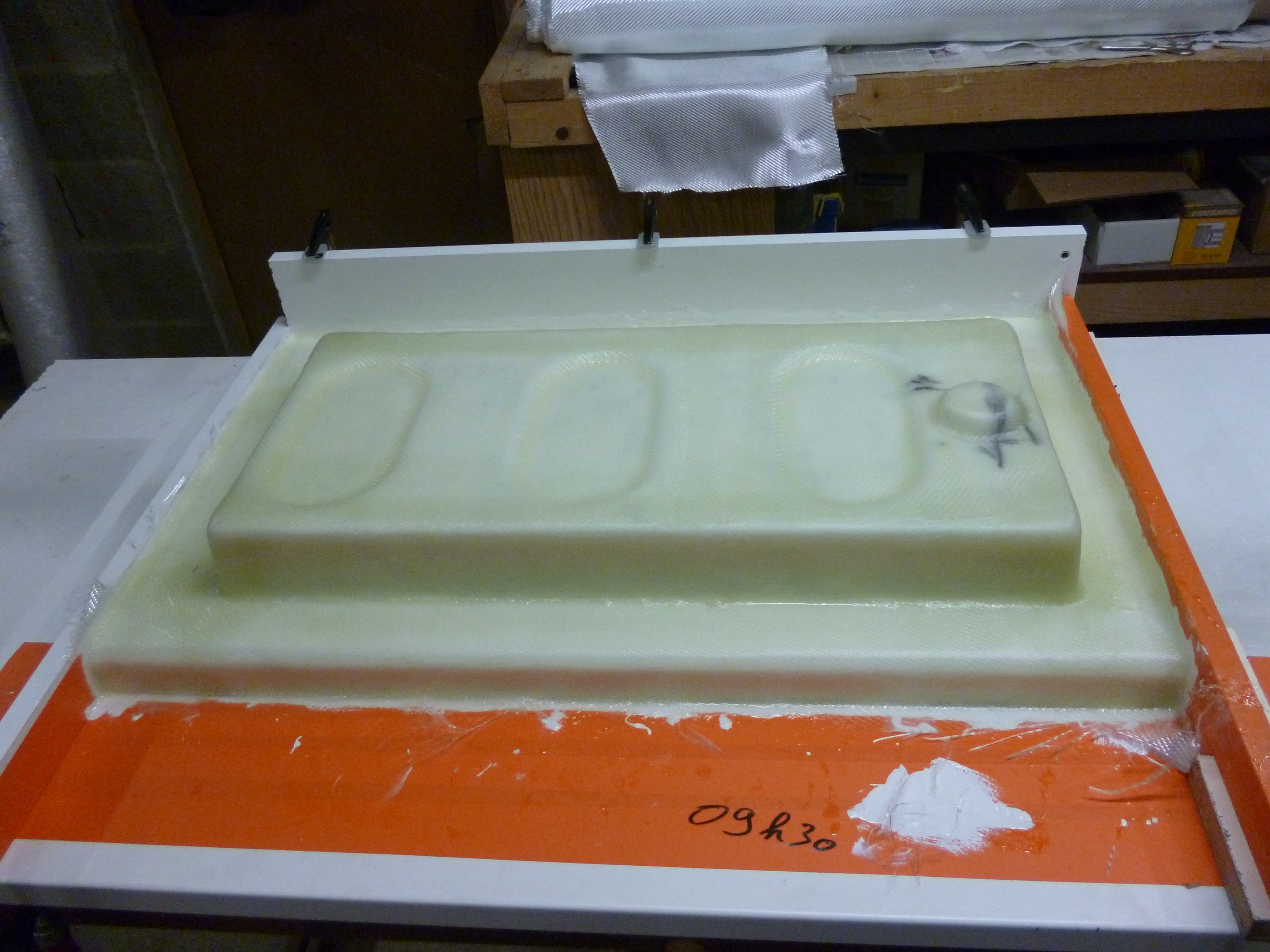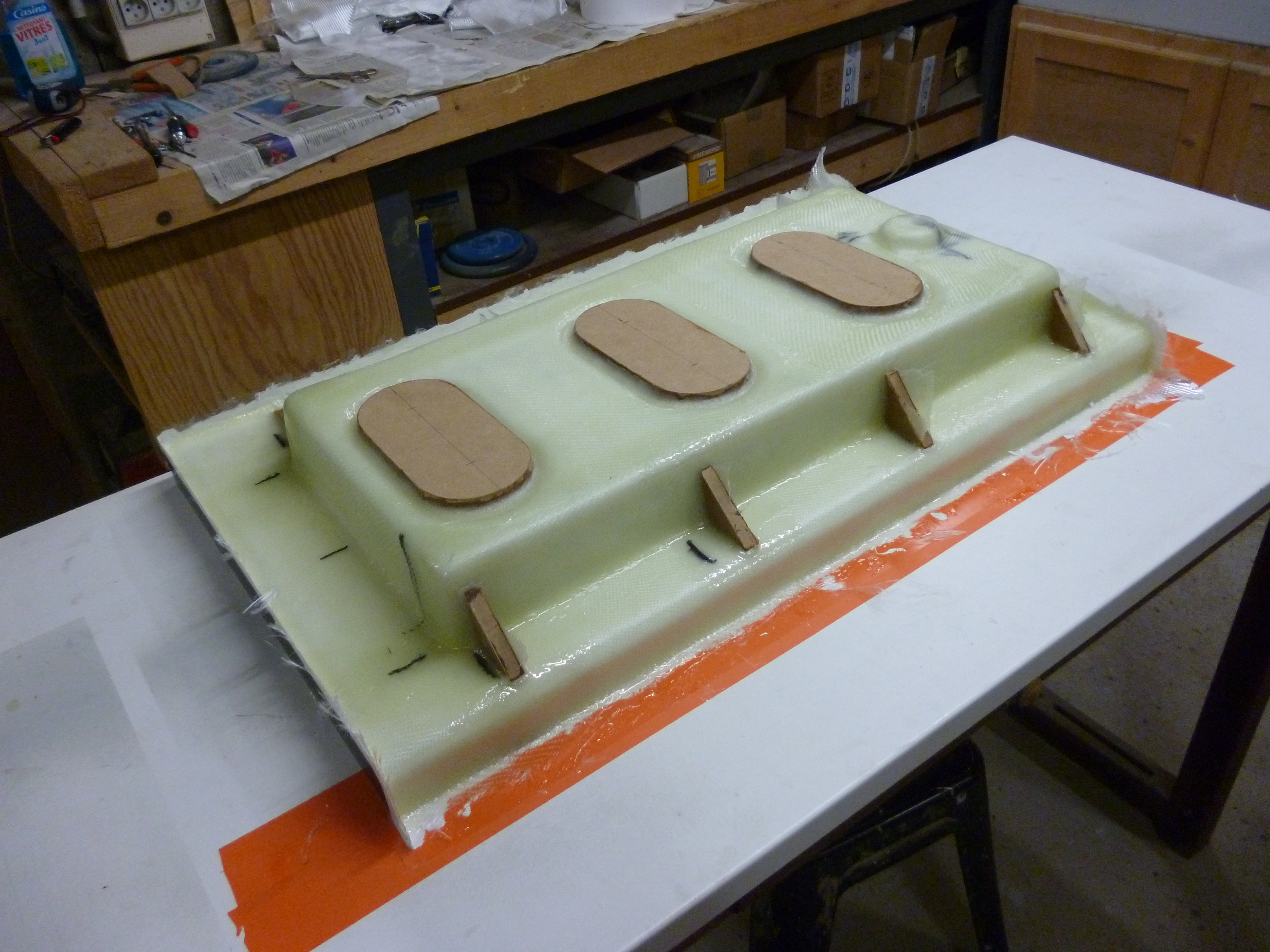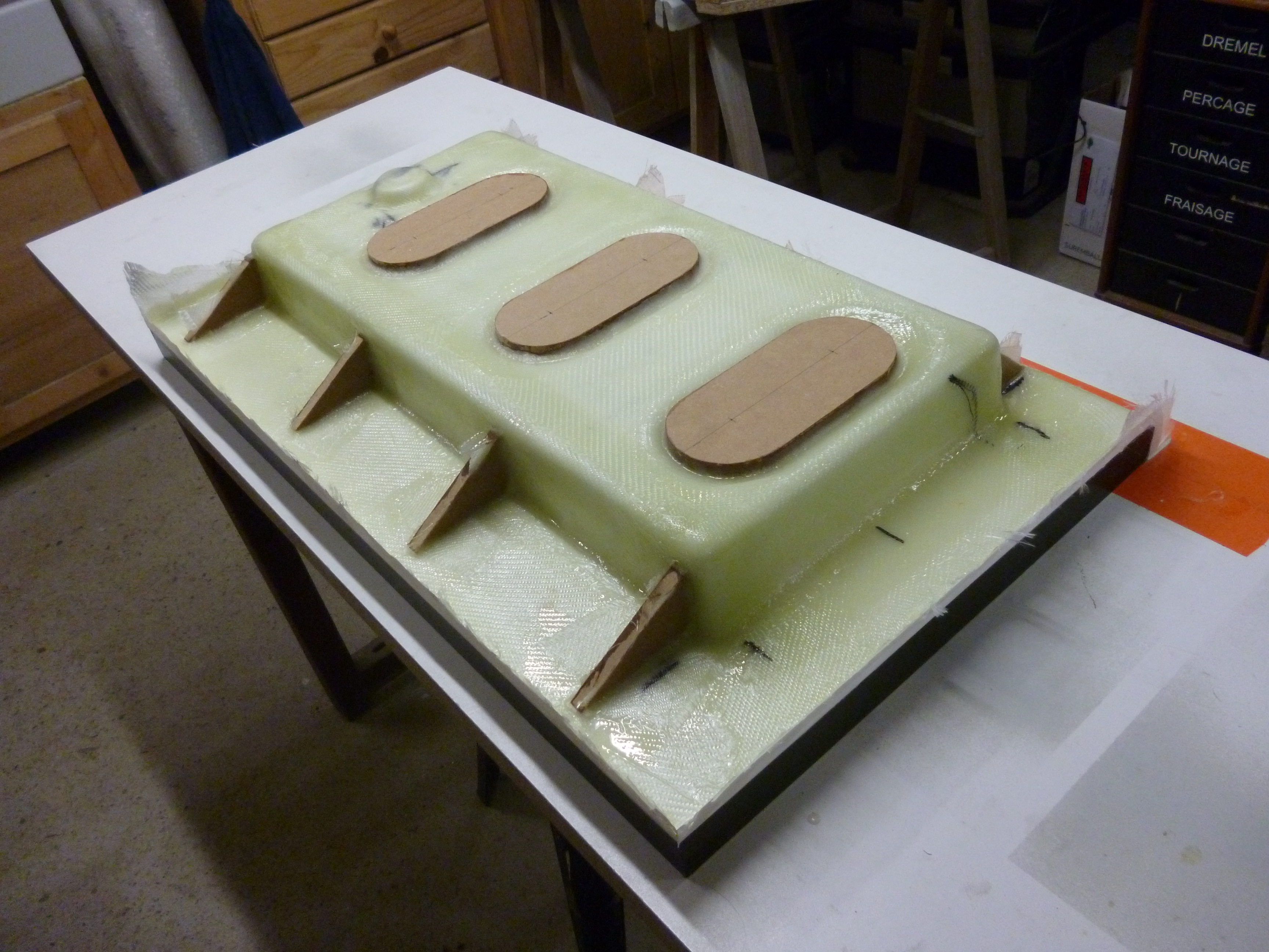 travail du jour, la stratification de la pièce définitive, en espérant qu'au démoulage tout aille bien