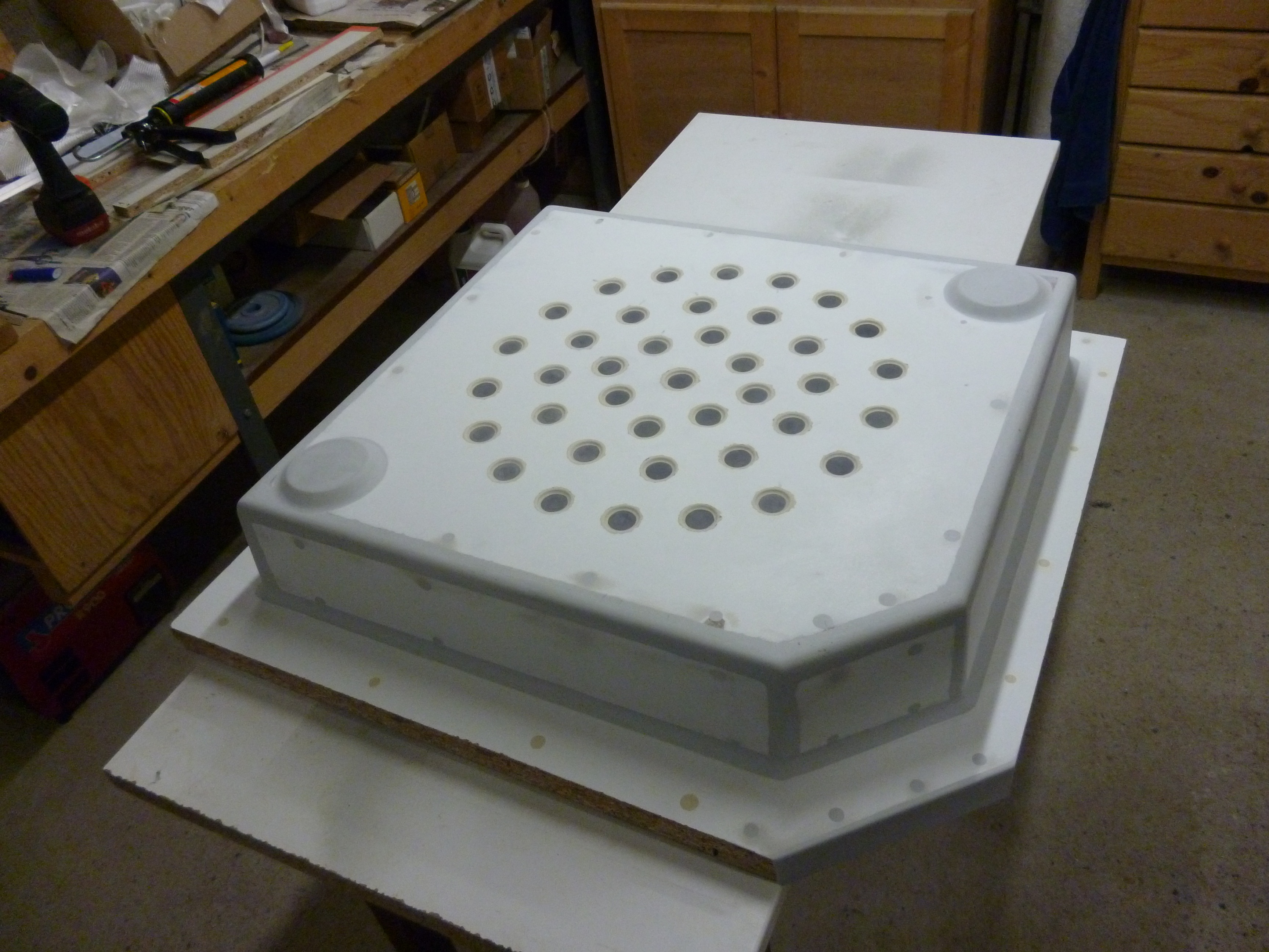 sinon, avancement du moule du bac à douche, demain je met un premier coup d'apprêt epoxy au pistolet