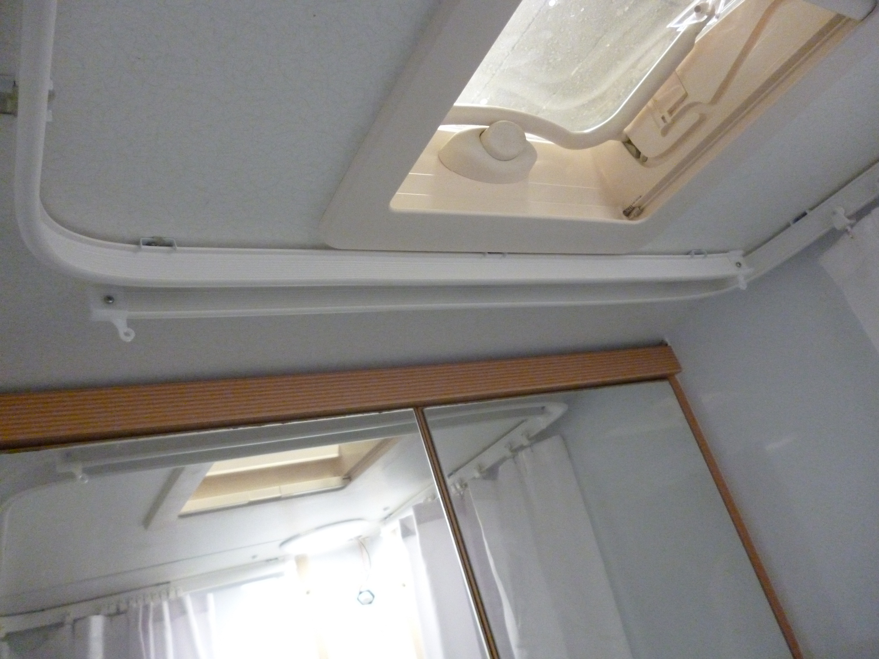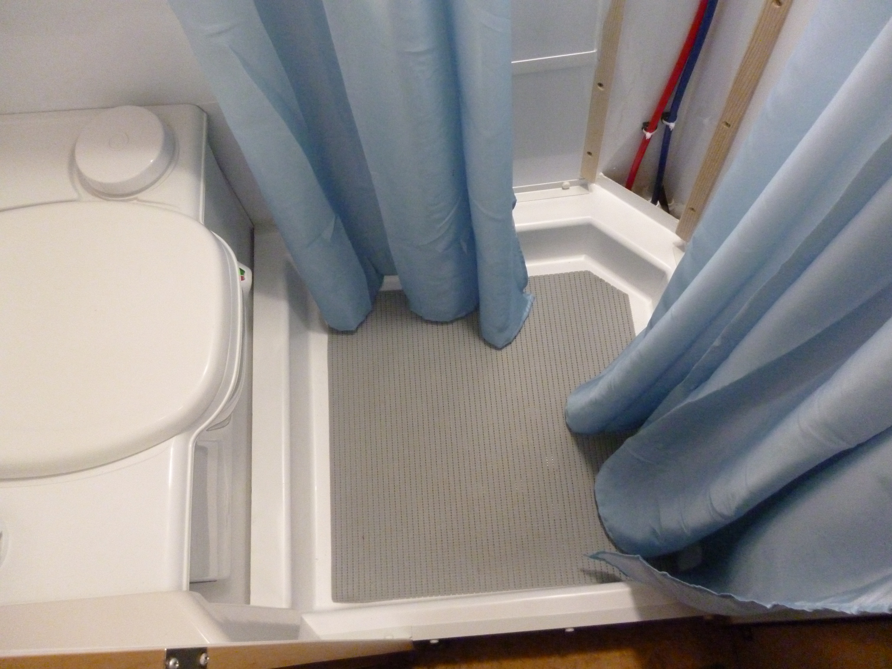 les deux rideaux se croisent au niveau du WC, sur toute la largeur, enfin presque