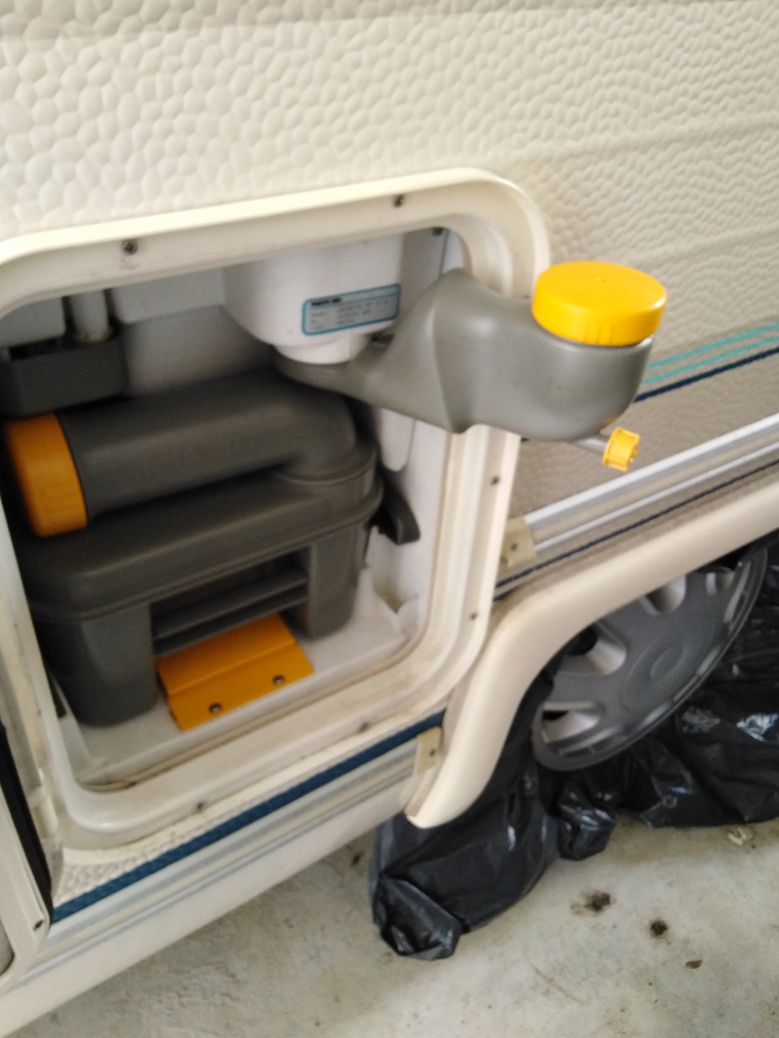 Comme tu vois le bouchons doseur est monté sur le tuyau bras qui pivote pour aussi évacuer les matières fécales dans un vidoir à wc chimique