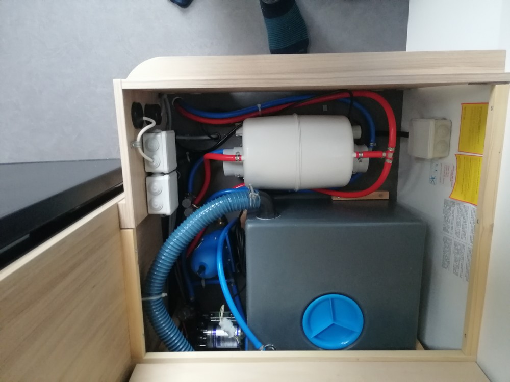 2) Le vase n'est pas juste derrière la pompe, impossible d'accès. Il y a un té qui envoie l'eau froide sous le frigo pour le lavabo et sur l'autre ligne, juste à cet endroit, le boiler et le reste du circuit derrière. Il n'est donc pas nécessaire de le placer en tête de ligne, tant qu'il n'y ait pas d'accessoires entre 2.