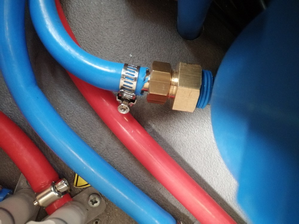 5) Mise en pression : 2 fuites au niveau des raccords et non du boiler par lui même : OUF !!!! un tour de vis en plus et cela semble aller (je verrai demain après la nuit : j'ai coupé l'alimentation de la pompe au cas où