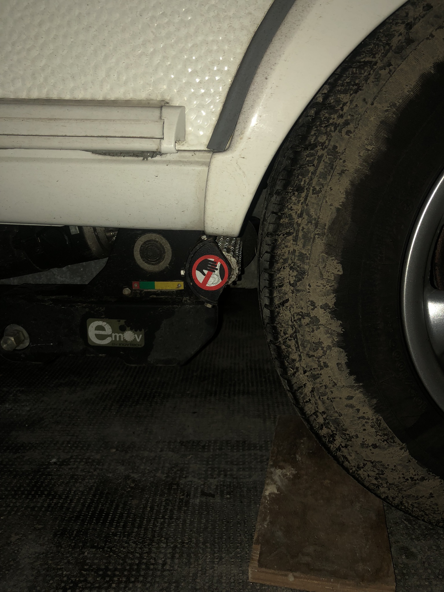 - le poids en flèche, 2% des 1600 kg de la caravane, j’utilise un pèse flèche ( environ 70 kg environ) en gonflant les pneus arrière de la voiture à 3,5 bars (en solo 2,5 bars)