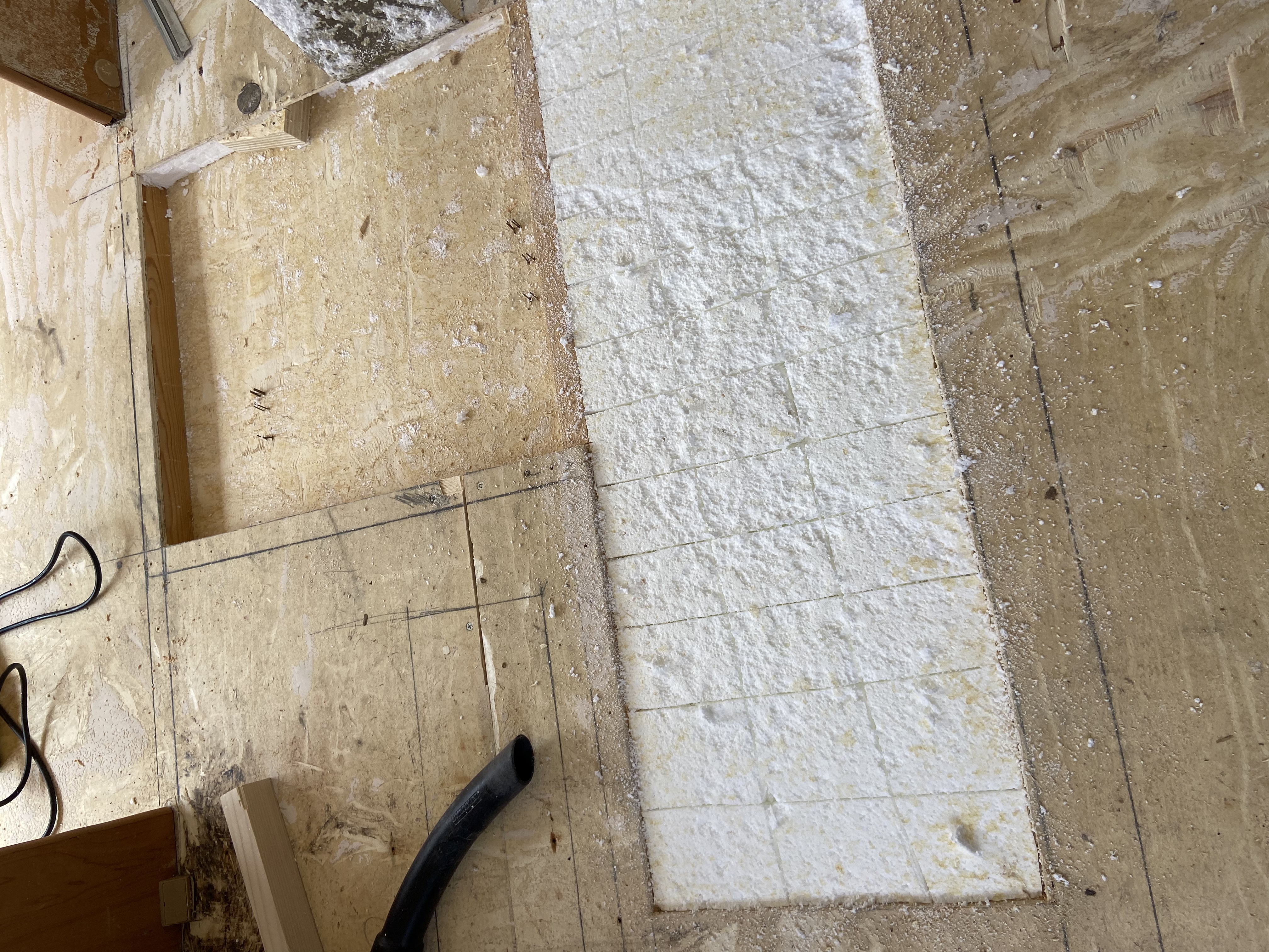 Je vous mettrai des photos du plancher, ça semble avoir bien rigidifié l’ensemble et me permet d’avoir un support bien plat pour installer le futur lino.