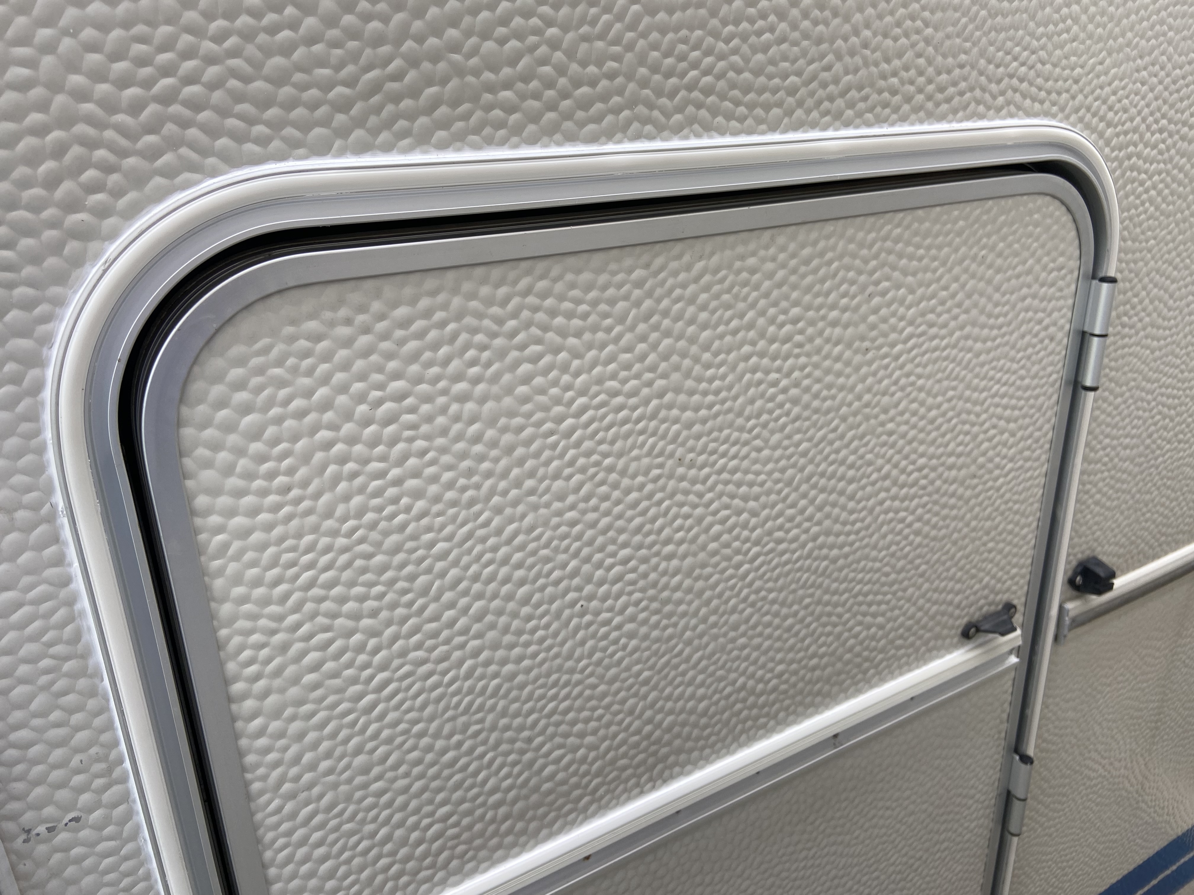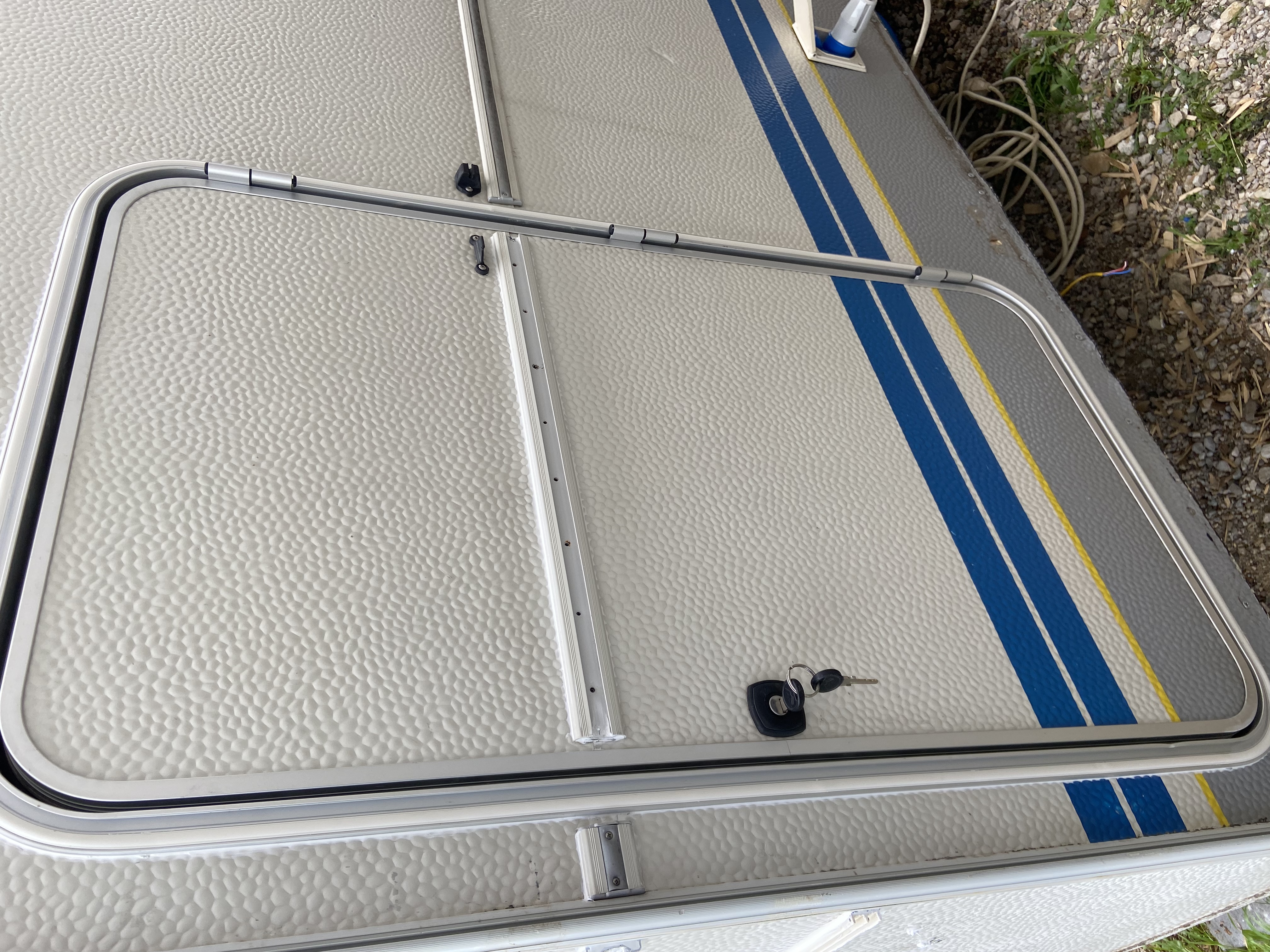 Et j'ai des rails en bas, au milieu de la caravane et au dessus des baies avant et arrière avec des joints d'environ 20mm.
