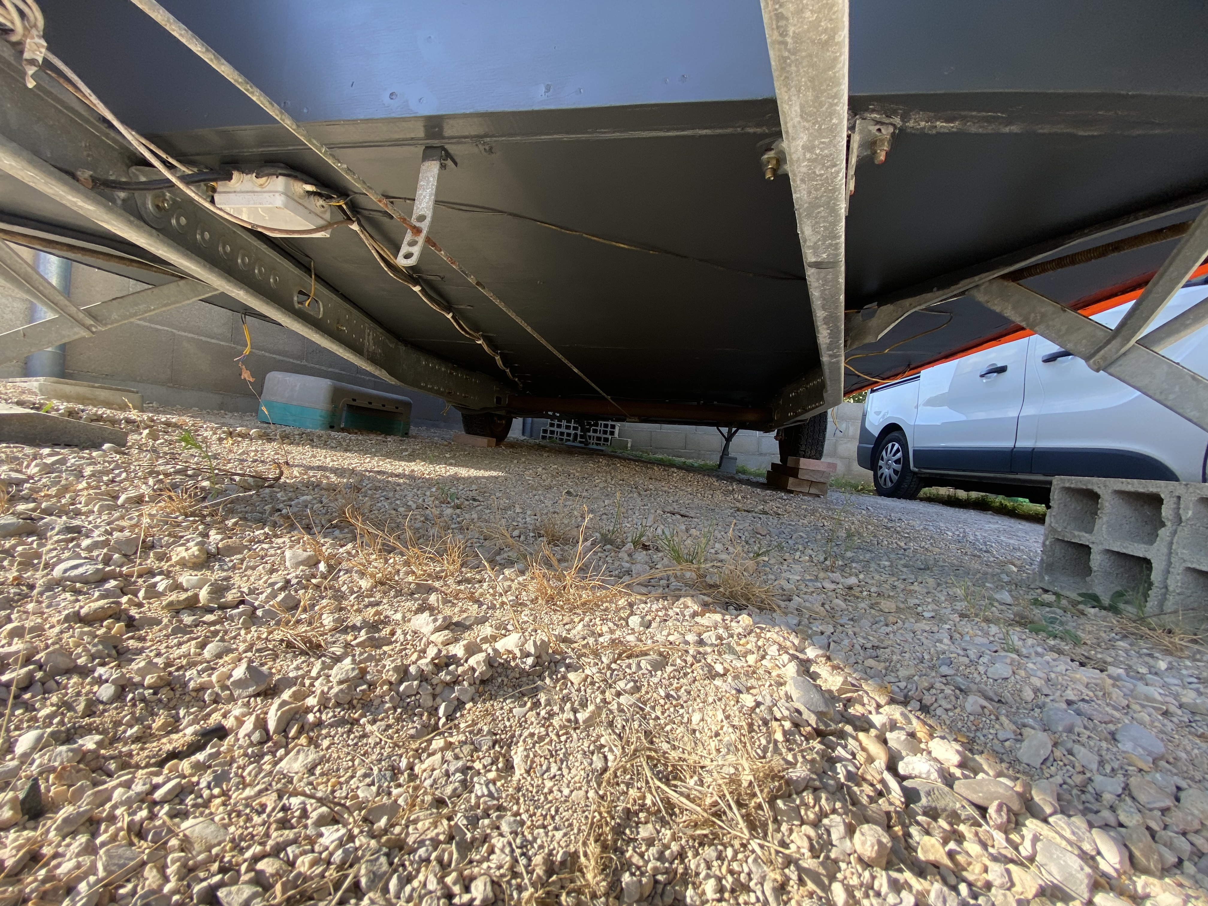 Sinon, j’ai passé une bonne partie de l’après midi couché sous la caravane pour repeindre tout le plancher dessous.