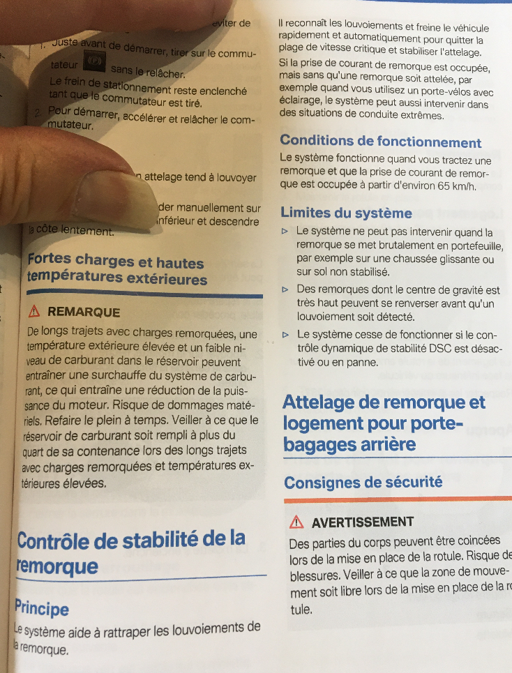 J’ai découvert que j’avais un système couplé au DSC de ma voiture (bmw x1) qui contrôle la stabilité de l’attelage au dessus de 65 km/h quand une remorque est branchée sur le 13 broches .. évidemment, ce n’est pas un ATC , mais ça rassure
