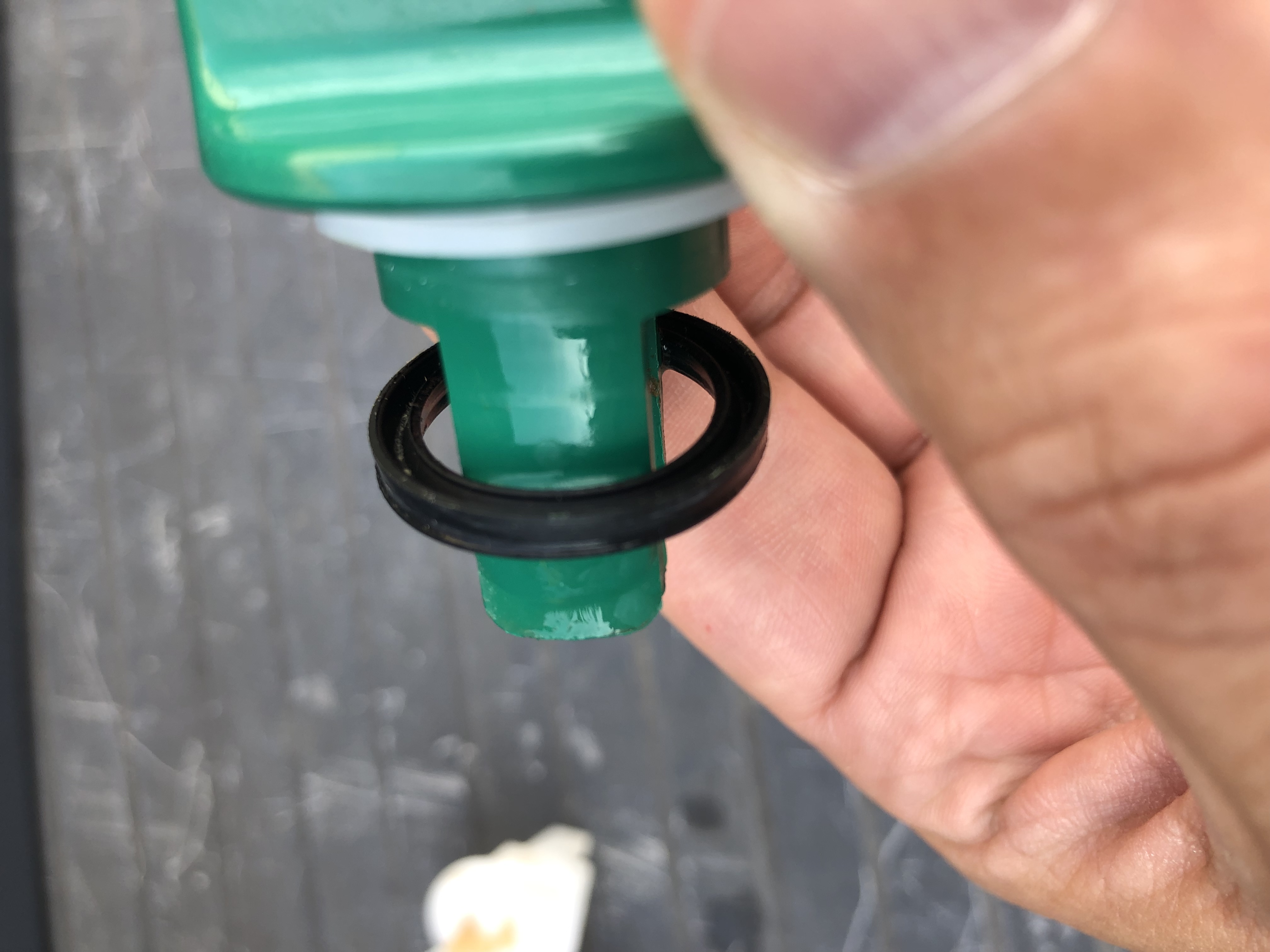 Bouchon vert - joint blanc - joint noir - l'enfiler dans l'orifice et clipser la pièce blanche dessous c'est bien ça ?