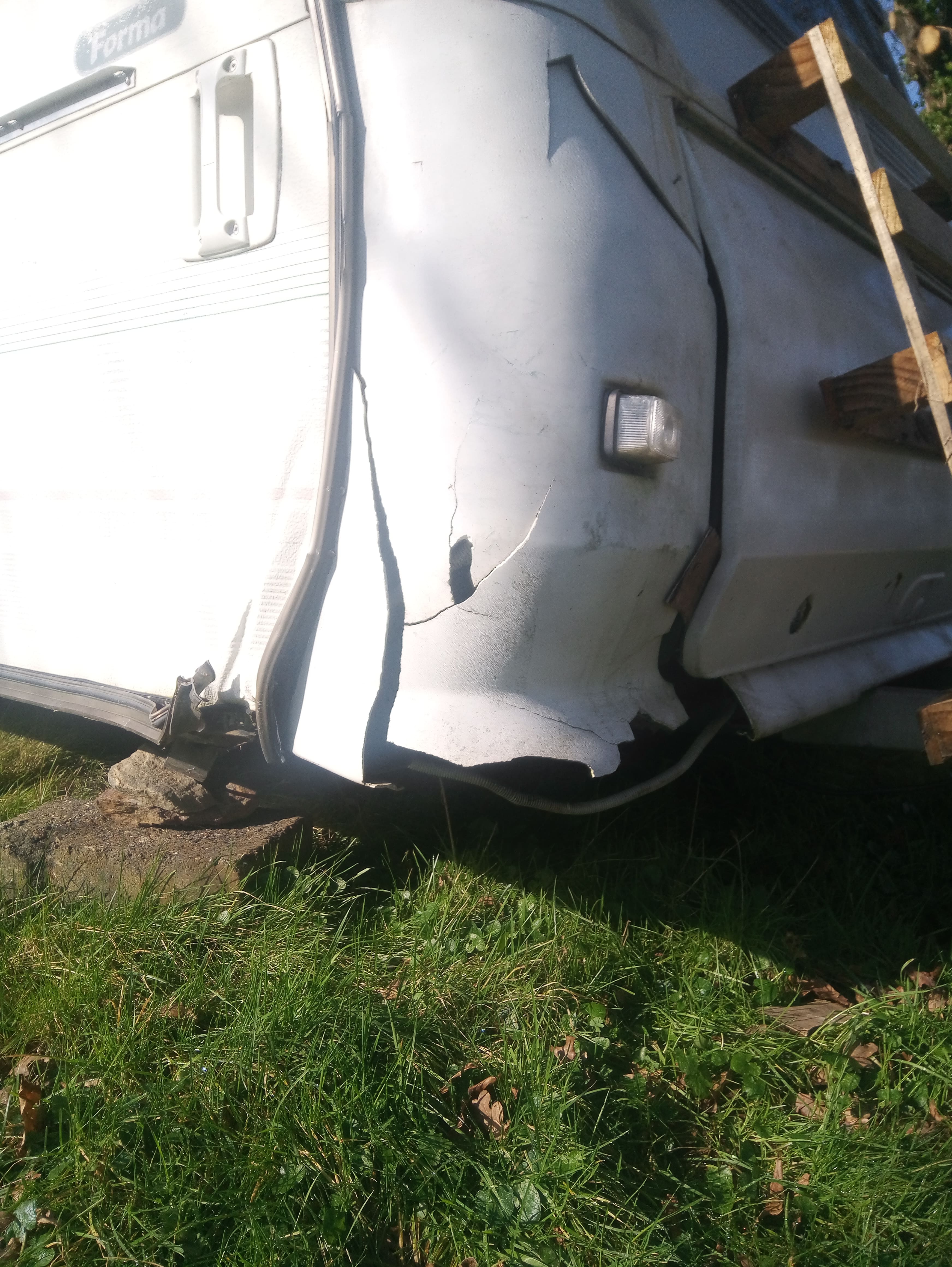 Je souhaite désormais m'occuper du dernier chantier de rénovation extérieur qui est le devant de la caravane qui est cassé. Il n'y a pas d'impact sur l'étanchéité de la caravane actuellement.