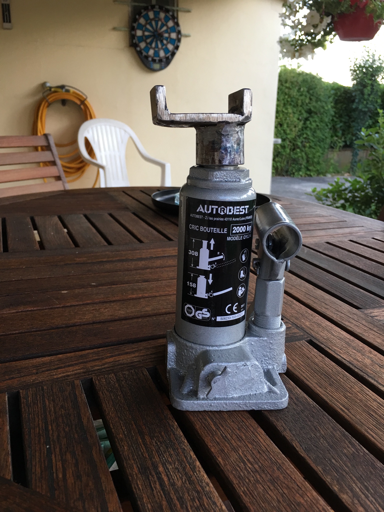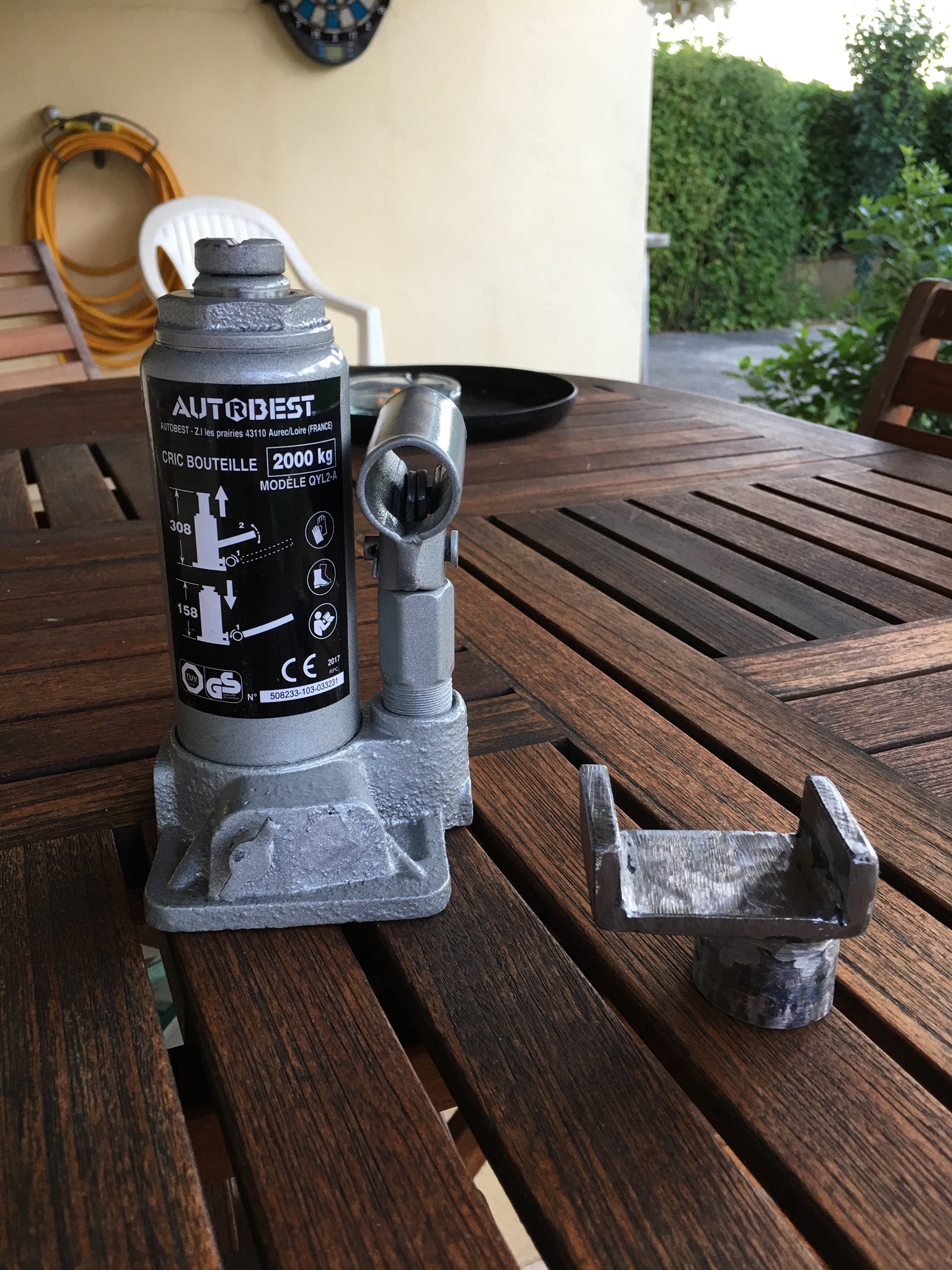 de plus, j' ai soudé un U sur la tête du cric bouteille qui évite que celui -ci dérape