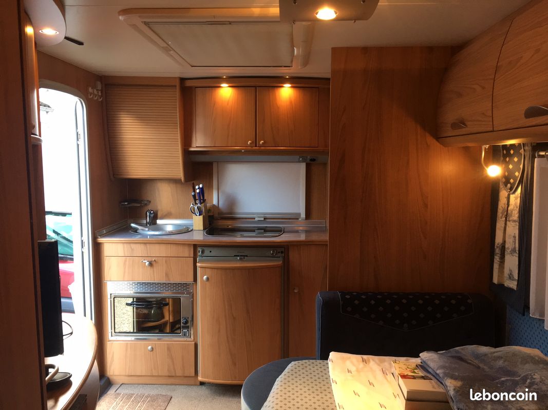Vaisselle (assiettes, bols, poêles tupperwares,..) , 2 transat et 2 chaise (LAFUMA), un meuble MIDLAND quasi neuf, une table alu neuve jamais déballée, 1 table lafuma (10 kg), 1 autre table, 2 rallonges électriques + adaptateur, cales progressives (FIAMMA) pour roues, 2 bouteilles de gaz dans le coffre, store / auvent avec joues et tapis de sol, 4 chandelles, cric, niveau, produits d'entretien, produits wc chimiques, séchoir à linge, bassines, pinces à linges, Antenne TV avec mât télescopique, échelle pliable alu, cache-timon, porte-vélo.... bref, on a tout pour partir mais je pense qu'on était au dessus de la charge utile maxi !