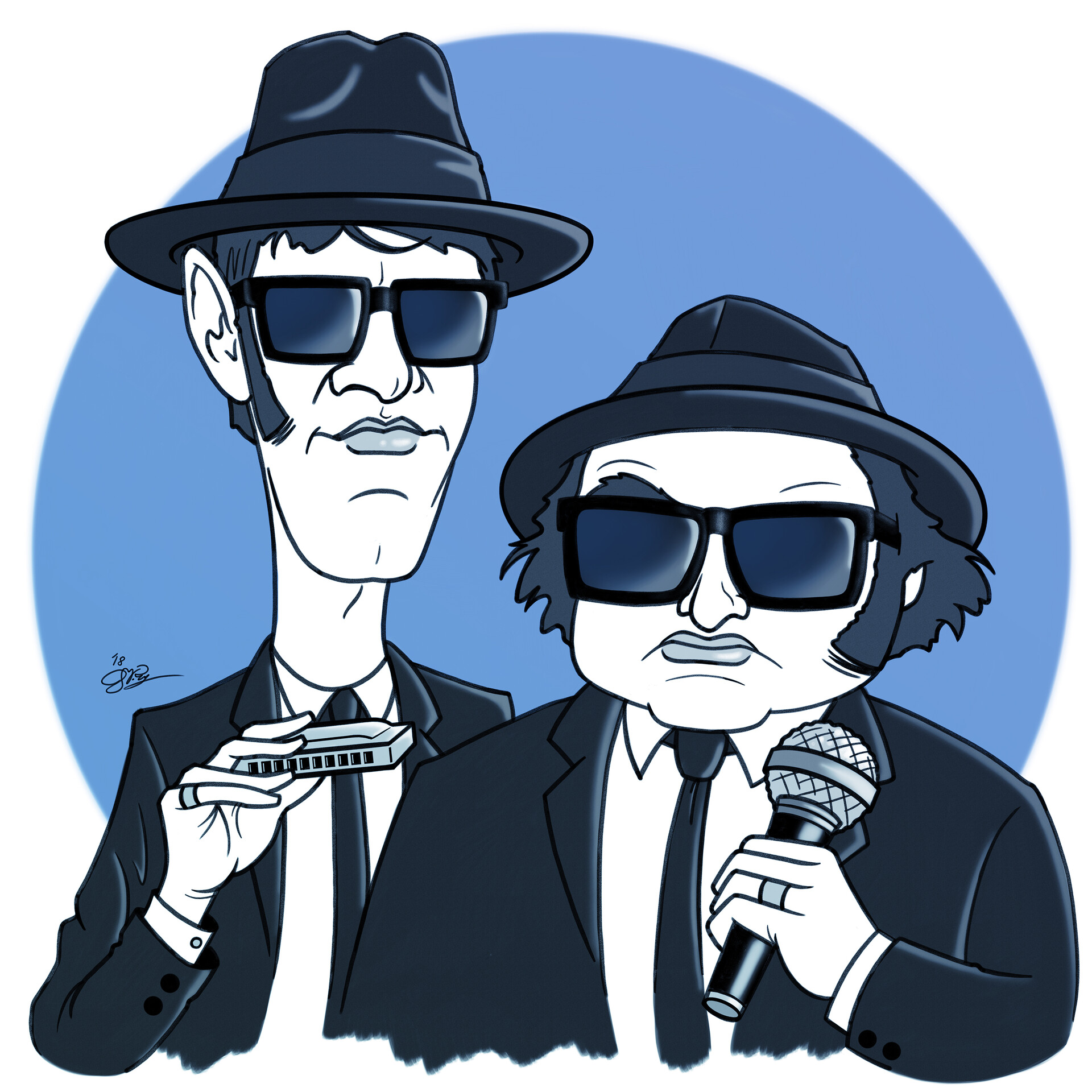Comme ça plait à mon mari je vais faire sur la porte des WC les caricatures des Blues Brothers, donc coté l'intérieur, pas sur la porte côté couloir !