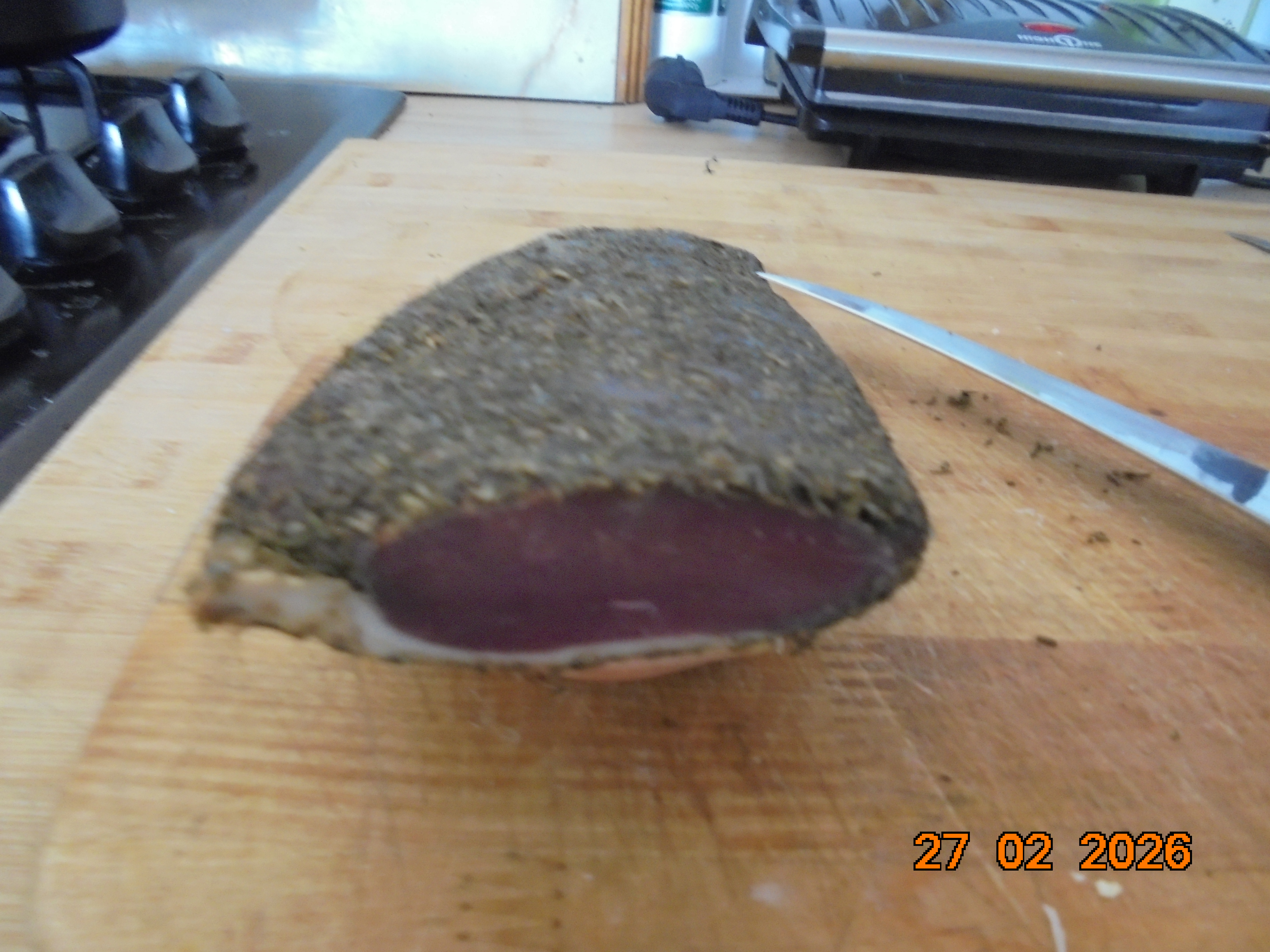 Comme je travaillais en cuisine, j'en ai profité pour trancher le magret de canard que j'avais mis à sécher et fumé avant l'incendie de mon garage. Il est excellent, ça sera parfait pour les apéros, car j'ai fait des parts et mis sous vide.