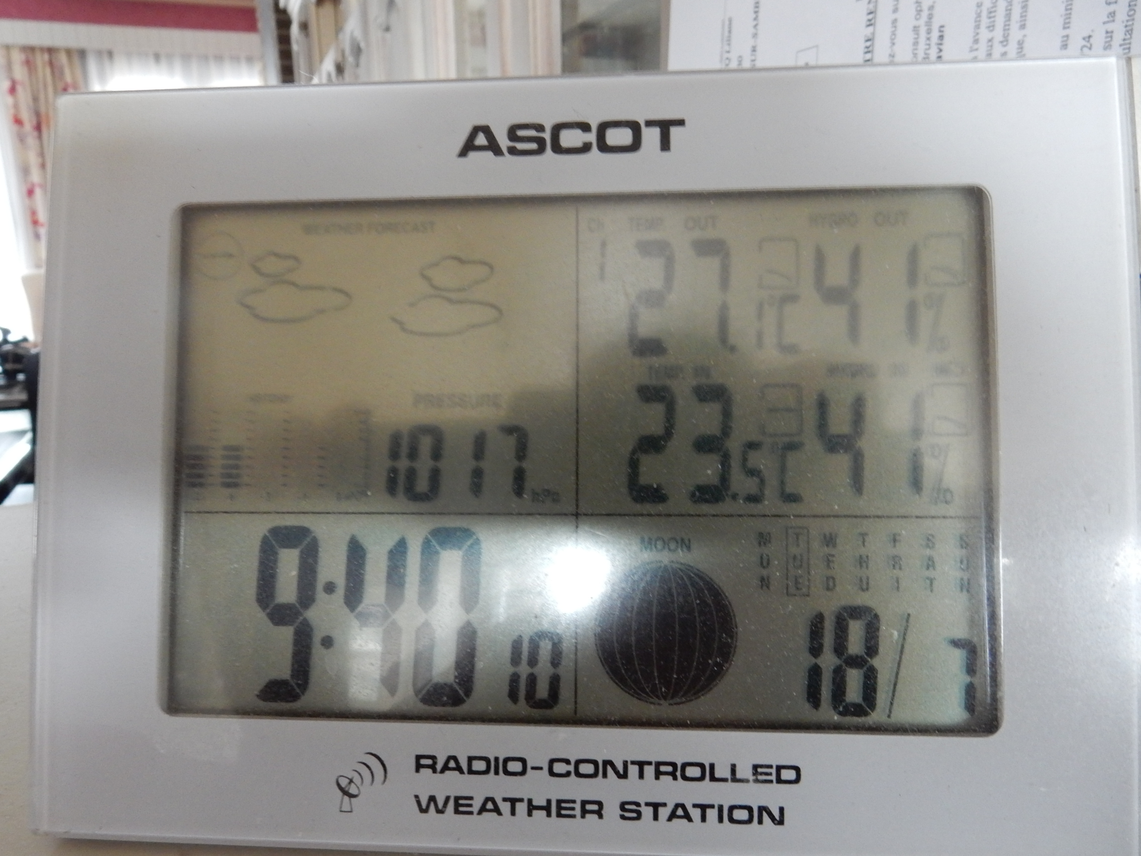 Cet après midi soleil et en ce moment un peu de nuages et 21°3 , humidité 41%