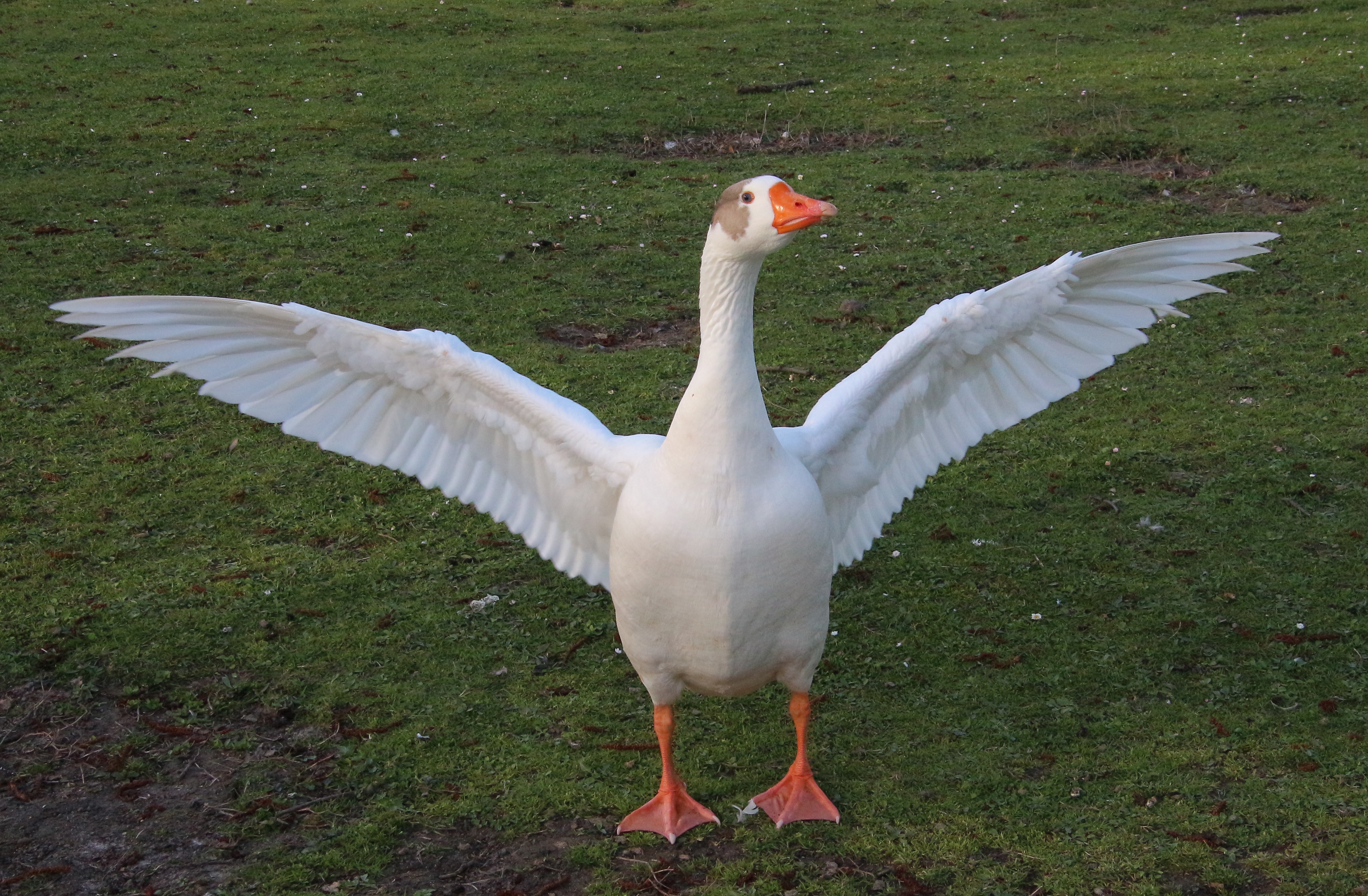 Une oie blanche en pleine forme dans le Parc Bourran - elle faisait un peu de gym !