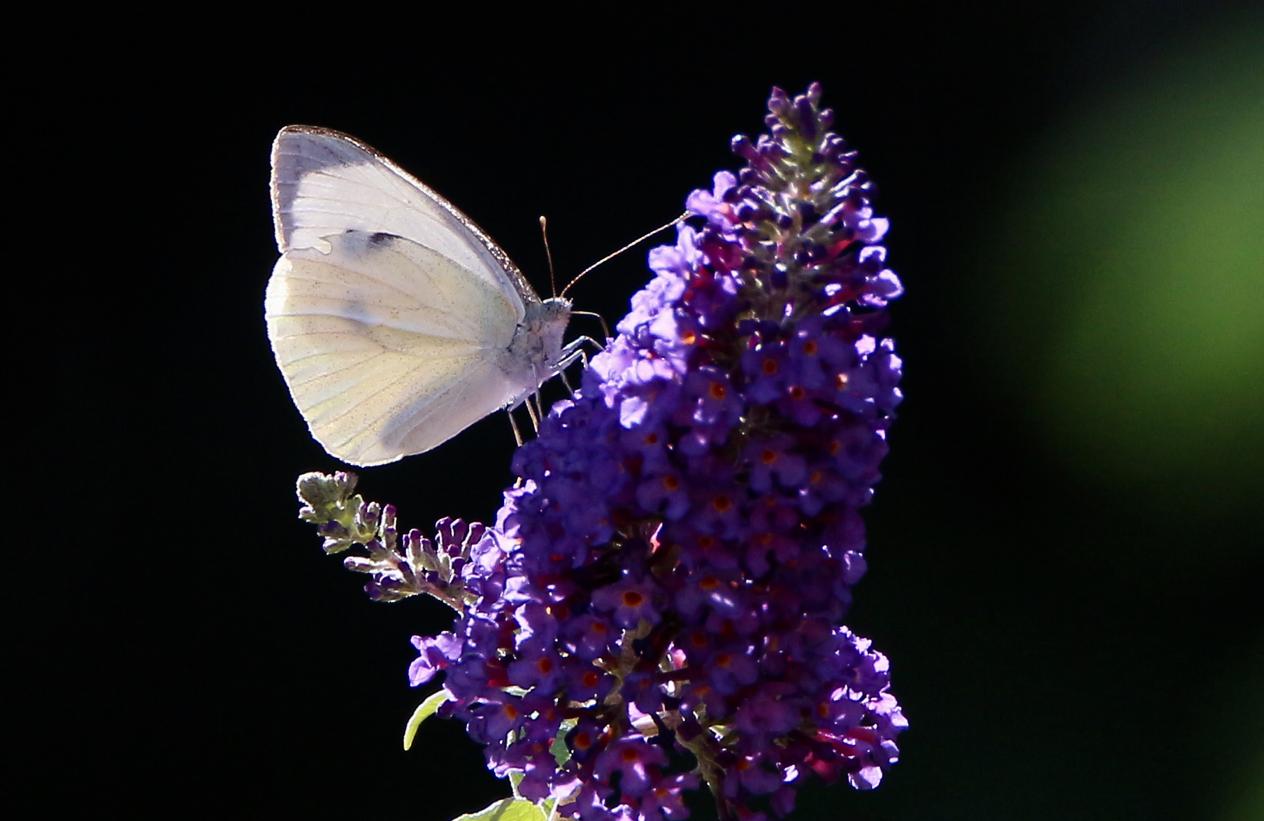 Un papillon posé cet après-midi sur mon arbre à papillons, le parfum des fleurs de buddleia les attire !