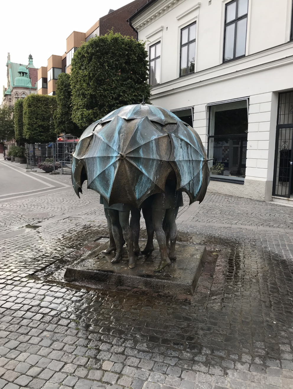 Je ne la connaissais pas, j'ai cherché "statue bronze parapluie".